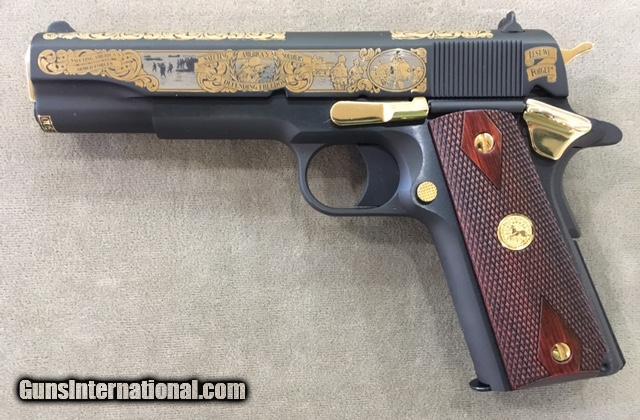 Description: This Colt 45 Auto Pistol is currently available from America Remembers for 1995.00 plus 149.00 for the glass display case. We are selling this one at one hell of a discount and it is brand new, unfired, with boxes and all paperwork, etc. I doubt seriously you will ever find one at this price again. SOLD Curio/Relic: Yes |