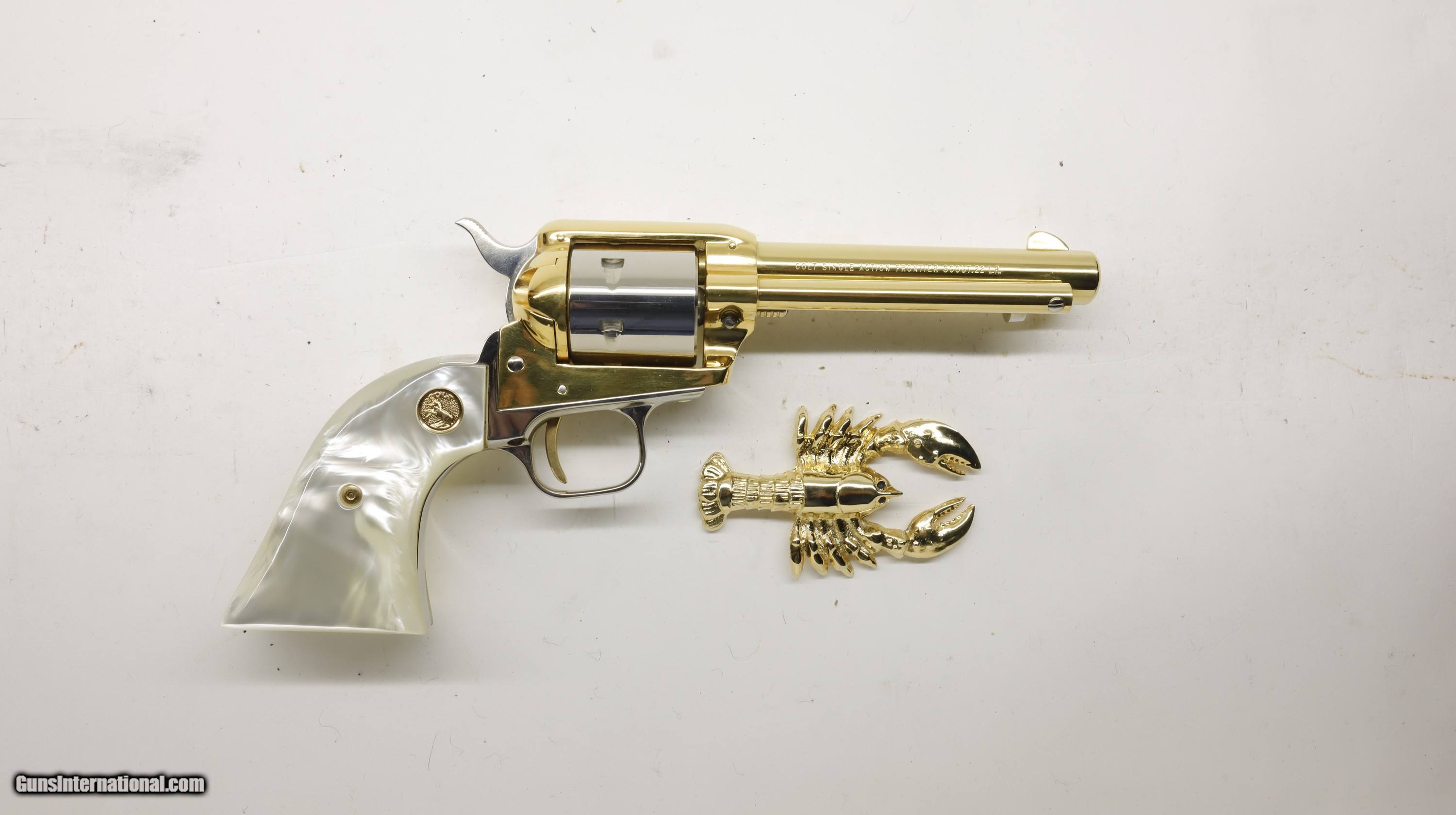Description: Colt Frontier Scout Maine Sesquicentennial 1820-1970 Commemorative, new old stock, still new in hard case. Gun is perfect. SN is 46xMES. We will trade for silver and gold. We accept personal check, any certified funds, Ven-mo or Z-elle. We can also take your credit card, +3%. Email me if you would like these pictures sent to you, they will come through bigger and better than on the listing page here. We do offer Layaway. Our standard terms are 25% down, 90 days. Initial deposit is not refundable. Email me with any questions. Please check your local laws to confirm it is legal to own in your state! Buyer pays $30 shipping and insurance to your FFL in the lower 48. AK, HI or PR is extra. I will ship to California, as long as it is legal, NO PROBLEM! All my guns come with a non-firing, 3 day unconditional return privilege, from the day UPS delivers to your dealer. Buyer pays shipping both ways if the gun comes back. Please make sure to make it to your FFL to inspect within the 3 days. If your gun doesn't have a box or case we can add a new hard case by PLANO for secure shipping for $30 if the buyer wishes (highly recommended, cheap insurance, really helps keep the UPS monster from eating my guns!). I am a licensed FFL, and will include a copy of my FFL with the gun for your dealer’s records. I will ship to a C&R if the gun is eligible. I will ship to California, but you need to confirm the gun is legal where you are, California or other. WE BUY AND CONSIGN GUNS AND GUN COLLECTIONS! We will travel to pick up collections! I am always looking for good clean, old original Winchesters to buy, consign, or trade, especially Pre '64's model 70's and model 54's. WE ALSO TRADE FOR CLASSIC CARS AND TRUCKS! We also trade for gold and silver. SOLD Handgun Caliber: .22 Long Rifle Manufacturer: Colt Model: New Frontier Barrel Length: 5 Condition: New Old Stock |