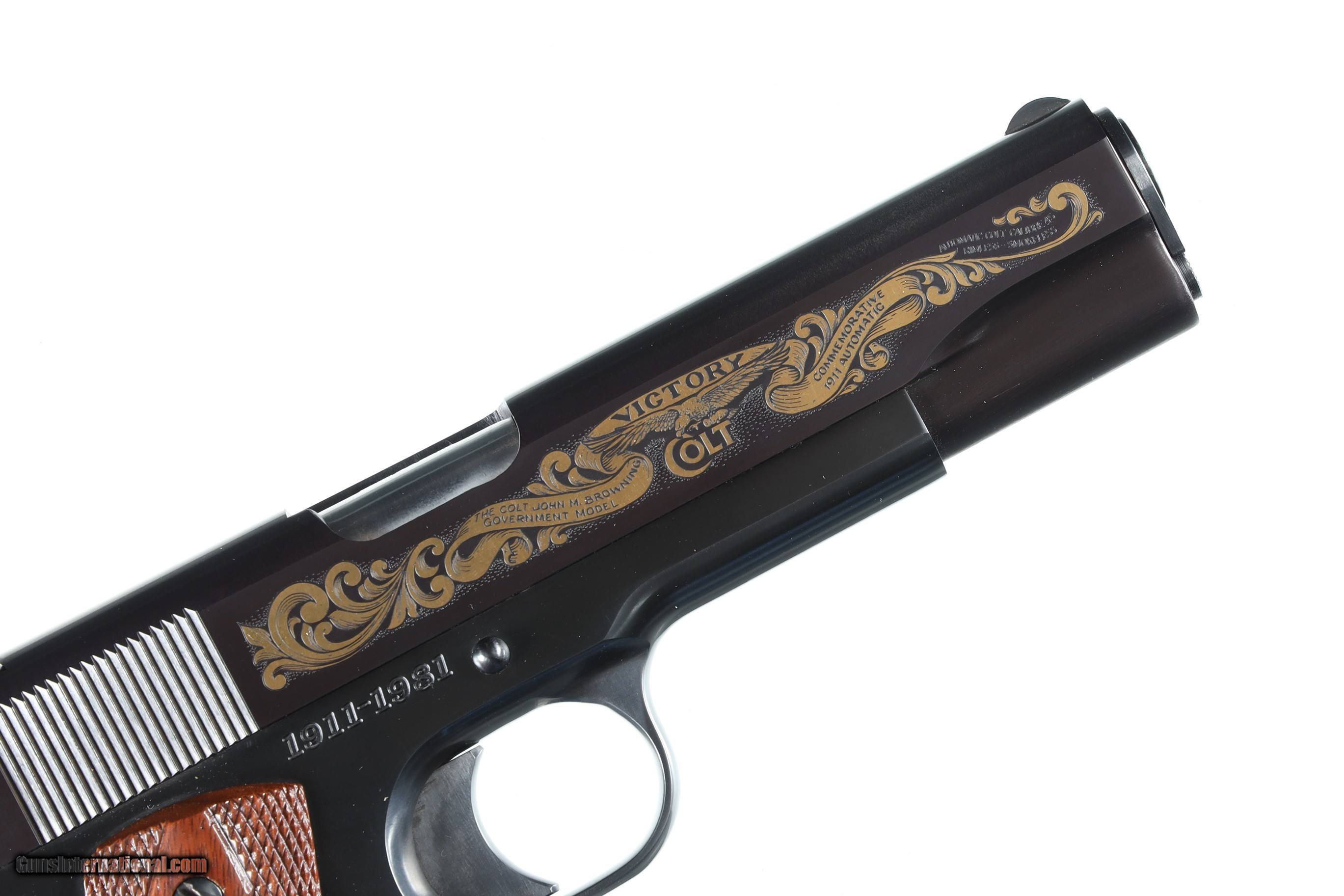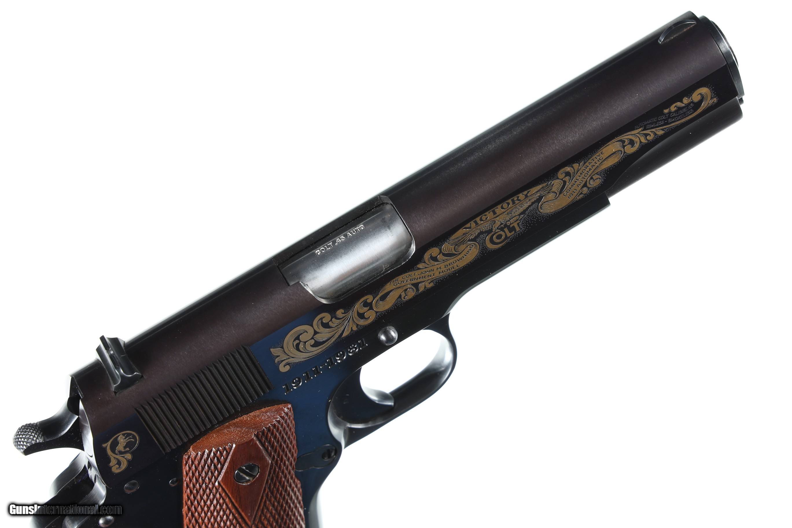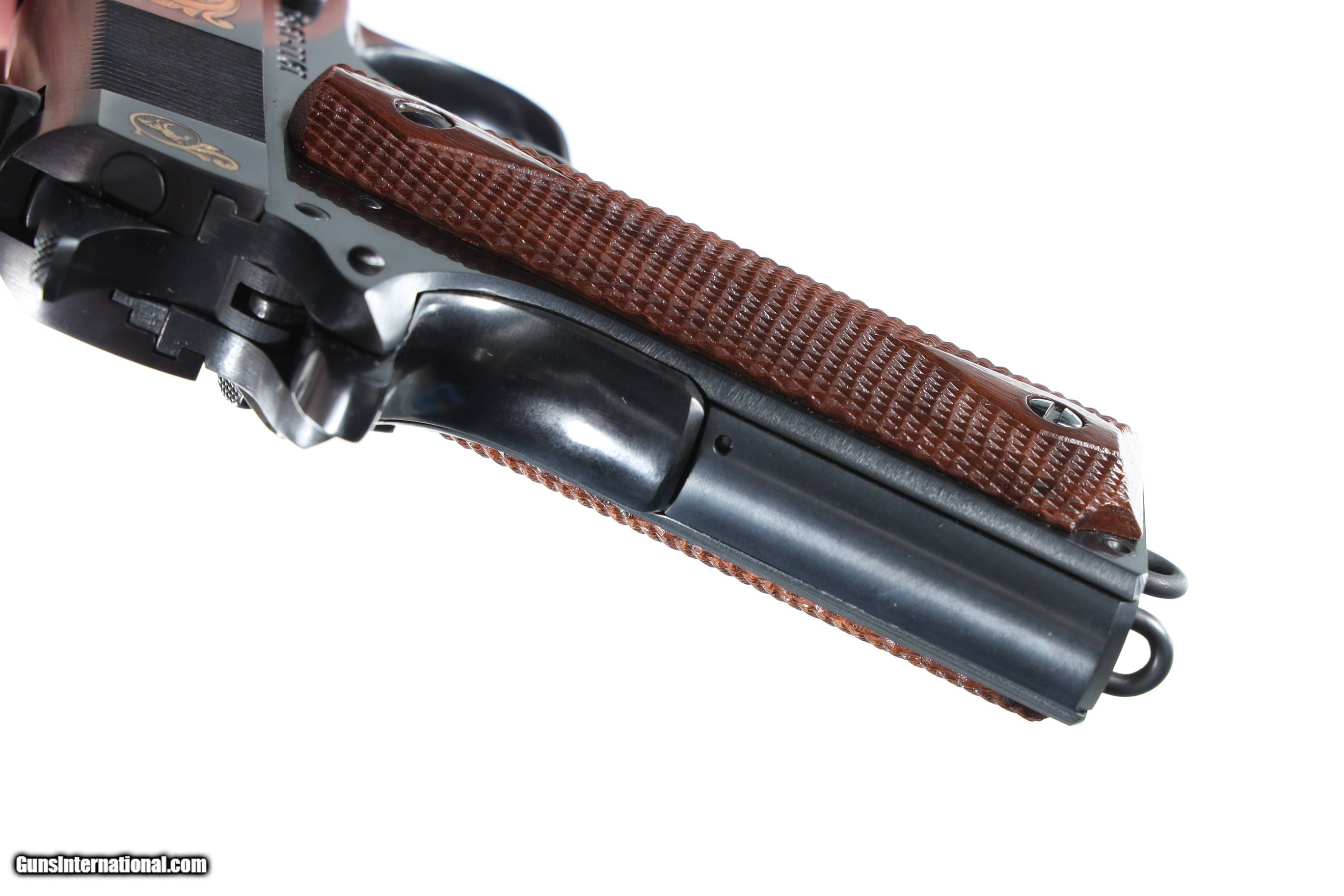 Description: Colt John M. Browning Commemorative Government .45 One of 3000 produced commemorating 100 years of production of the Colt 1911 pistol. Blue finished with gold filled engraving scenes. As new with out box. • Free Shipping, No Credit Card Fees. • Lay-a-way available for this firearm. • 1/3 Down, a 1/3 in 30 Days 1/3 in 60 Days. SOLD Handgun Caliber: .45 Manufacturer: Colt Model: Government John Browning Commemorative Serial Number: CJMBC1112 Barrel Length: 5 |