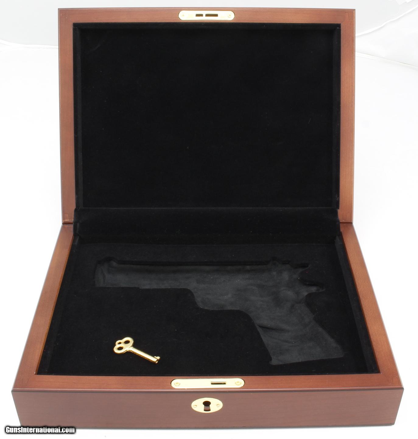 Description: COLT, "SILVER STAR" COMMEMORATIVE 1911 PISTOL, 1 OF 1000, MFG: 1984-86, SN#SS00747, LNIB, Probably Not Fired. This was the 1ST Stainless COLT 1911 Made, 5" Barrel, Pollished SS, Fine Walnut Presentation Case. Probably a Result of Other Gun Makers like Randall Introducing SS 1911 Clones. Ships to Lower 48, $50.00 SOLD Manufacturer: COLT Model: 1911 Serial Number: SS00747 Caliber Info: 45 Condition: LNIB Barrels: 5 |