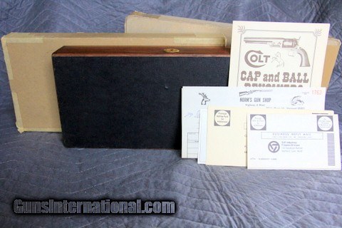 Description: This beautiful commemorative comes in the original blue silk-lined wooden case with accessories. It also has the original cardboard box that stored the case. Please see the pictures of this great commemorative set. SOLD Manufacturer: Colt Model: Commemorative Serial Number: 2906 Condition: excellent Weight: 2lbs 10oz |