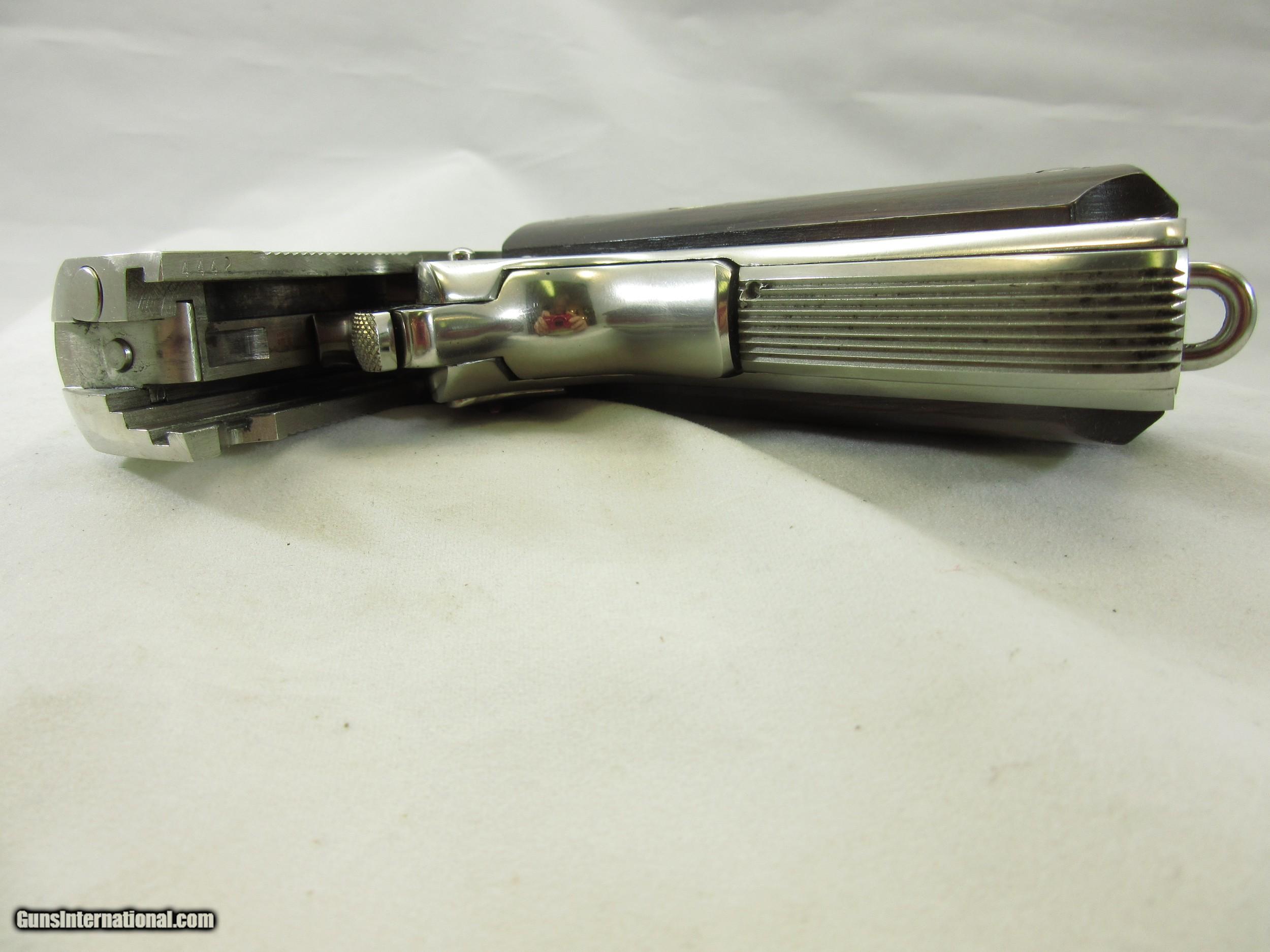 Description: This is a Colt 1911 WWII Commemorative of the Asiatic-Pacific Theater pistol in .45 ACP. Bright nickel finish with palm frond engraving and dark wood grips with gold Colt medallions. The pistol comes in a bamboo looking display case with a picture of the Japanese surrender on September 2th 1945, 7 silver plated dummy rounds and a plaque. This pistol has been fired. 1 of 11,500 made. This is a consignment gun. Reasonable offers will be considered. Price Shown includes cash discount. Credit Cards add 3%. FFL must collect 8% sales tax from NY Buyers. Shipping CONUS via USPS Priority Mail with tracking, Alaska Hawaii additional. Shipping Insurance, signature fees are additional cost. Used firearms are sold AS IS. NO sales to California. SOLD Manufacturer: Colt Model: 1911 Caliber Info: 45 Condition: Excellent |