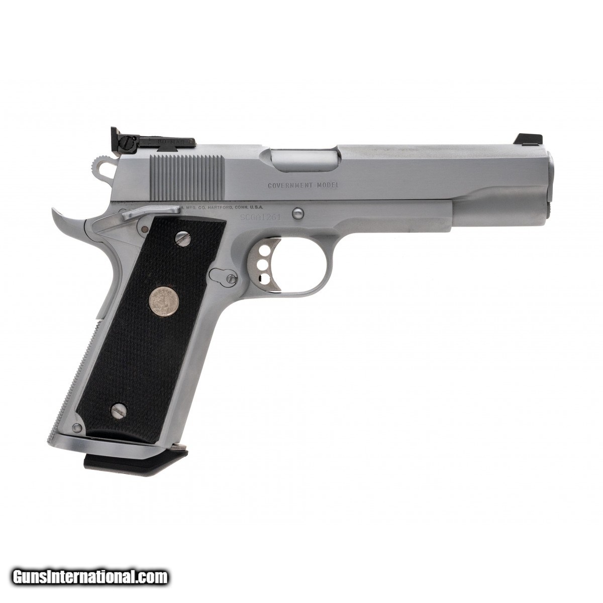 Description: " SN:SCGA1261. Modern production. .45 ACP with a 5"" barrel. Bore is in excellent condition. Stainless custom shop 1911 with flared magwell and adjustable rear sight. Overall condition is excellent. SOLD |