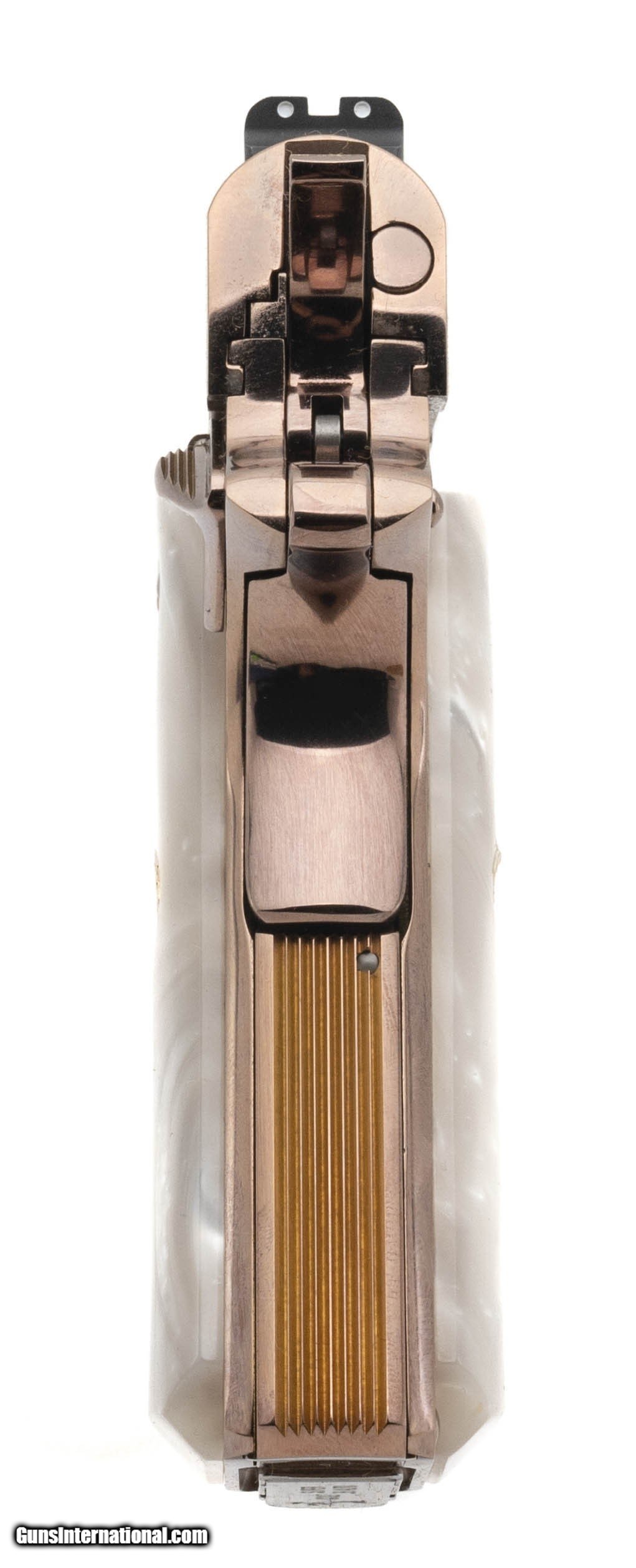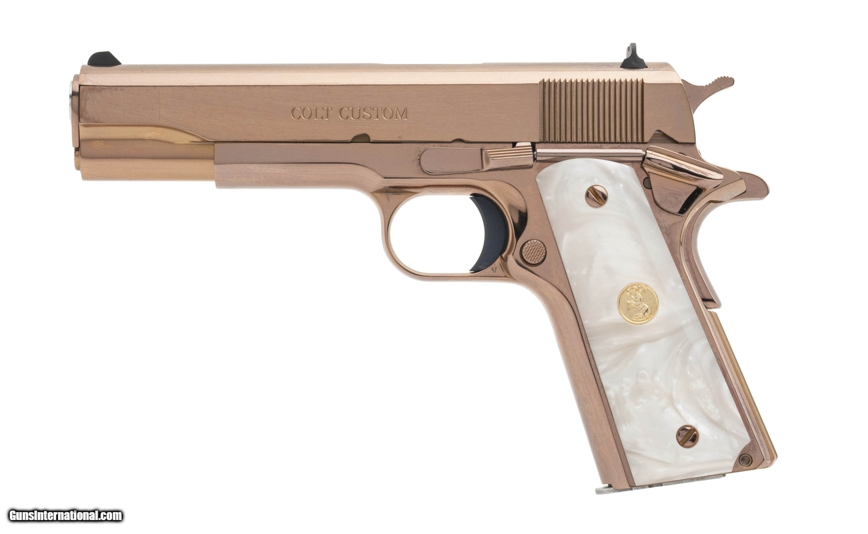 Description: "TALO Edition Custom Rose Gold Government Model with a 5"" Barrel and Fancy Grips. Includes 1-9rd Magazine. NEW UPC: 098289112958 (STOCK PHOTO) SOLD |