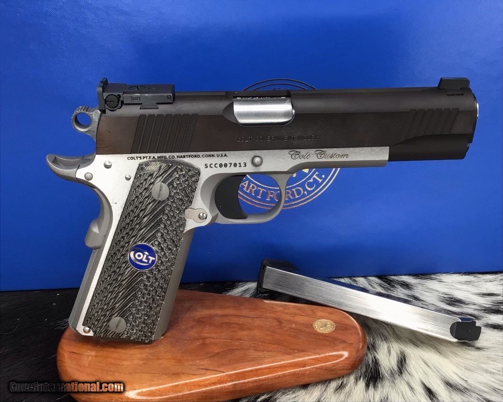 Description: New in Custom Shop box with test target and all owners papers to include white sleeve with sticker. Colt Government model with stainless frame and Bronze PVD Slide. 1 of 100 built. Slide has an image of the Onion Dome at Hartford Ct. Plant on left side of slide. Factory target shows one ragged hole. Beautiful gun, Unfired since factory. 1 of 100 Custom Shop Creation. Add 3% if paying with credit card. God Bless America from a proud American, and a Viet Nam Vet , thankful for our freedoms.. paid for by the Blood ,Sweat and Tears of our brave men and women in uniform. Ten Below Firearms is a Veteran owned and operated business. We specialize in out of production models of high quality firearms. We love to ship! If you are out of state or can't make it to our store, just give us a call! Handguns normally ship for $30 and Long guns for $40 to $65 for extra length long guns. That's 2-3 day USPS Priority shipping, Delivery conformation and with tracking number. Optional Postal insurance is additional $1.70 per $100 and highly recommended. We are OPEN BY APPOINTMENT ONLY FOR IN PERSON VISITS. SOLD Handgun Caliber: .45 ACP (.45 Auto) Manufacturer: Colt Model: Government Model Custom Shop Serial Number: SCC007013 Barrel Length: 5 inch Condition: New Metal Condition: New Bore Condition: New Finish: Stainless/ Bronze PVD Sights: Adjustable Case: Box / hardcase Item Location: Mn |