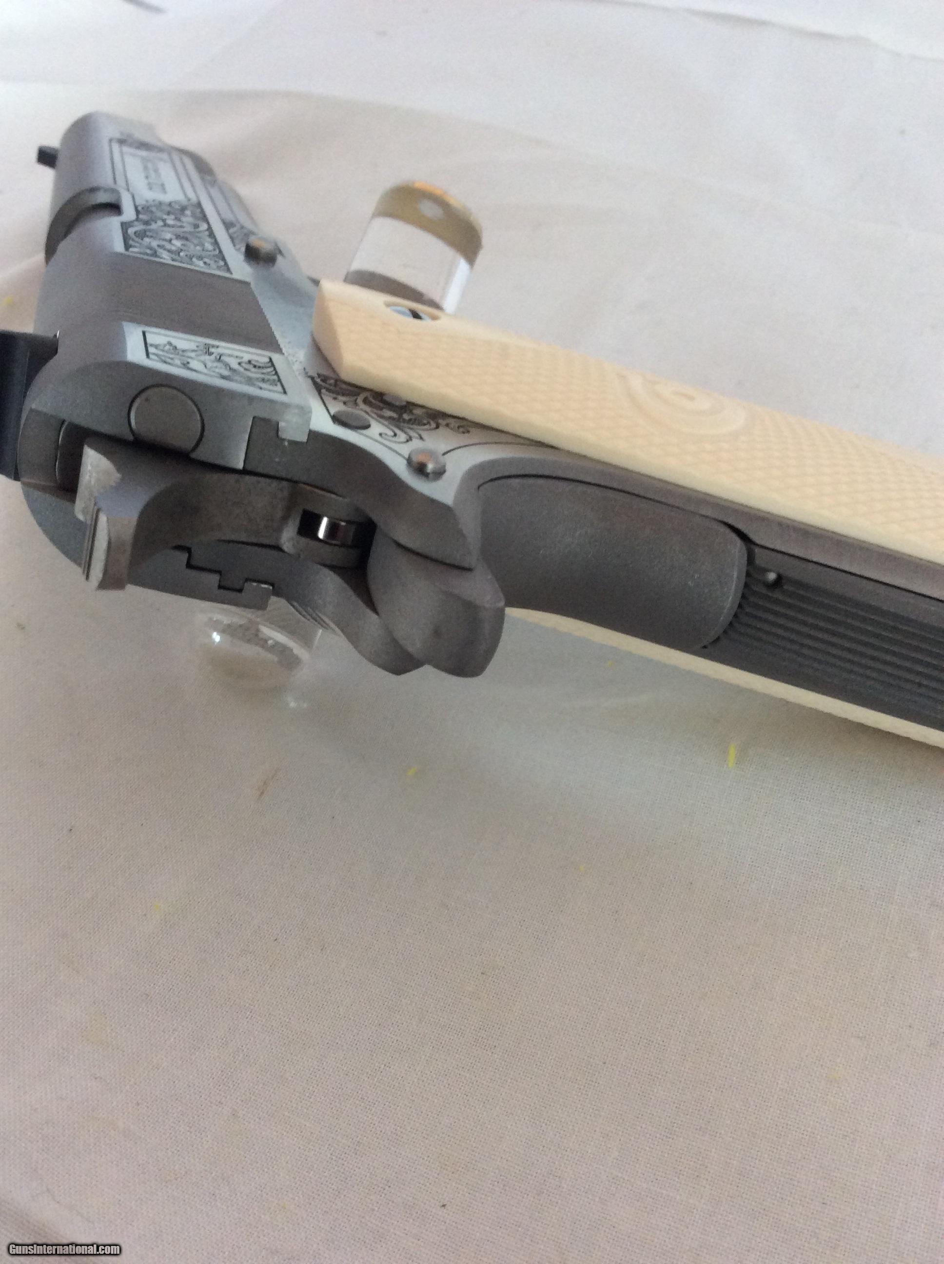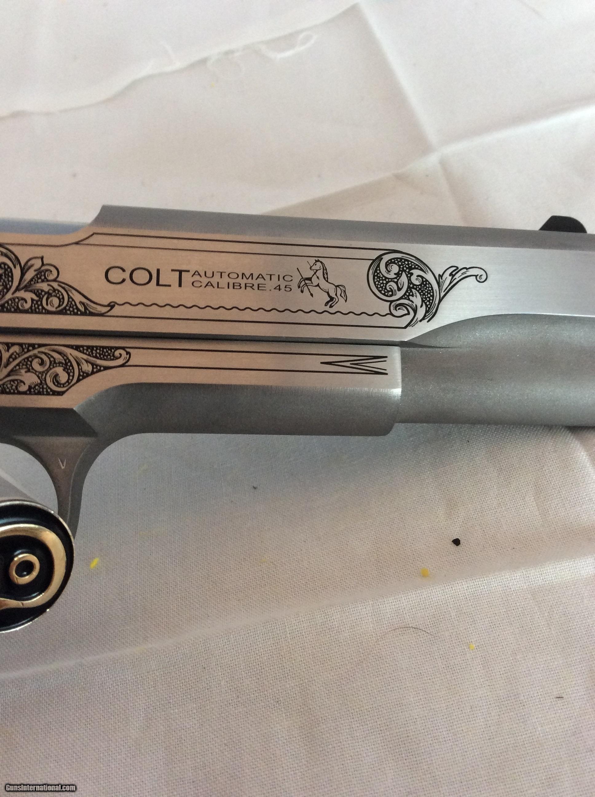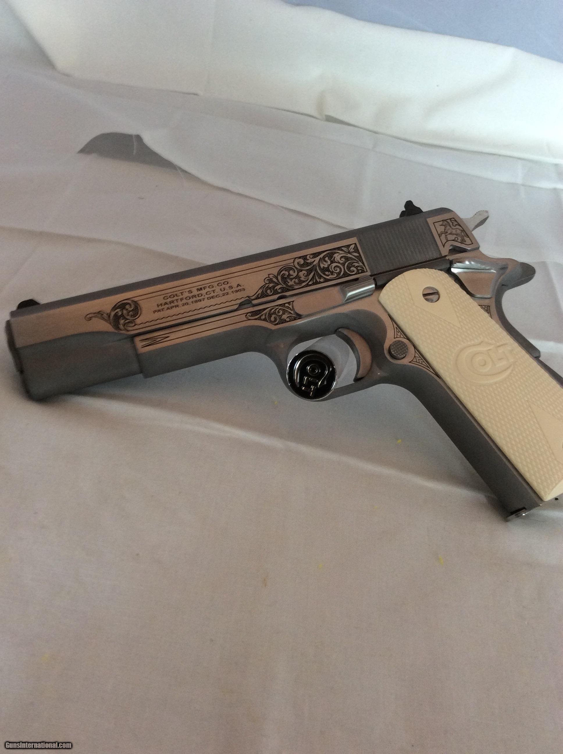 Description: Colt 1911 Custom Shop Glahn series 70. 1 of 300 produced. This is a brushed stainless piece in the style of Colt Master Engraver Wilbur Glahn. Bead blasted etched and antiqued in this Glahn inspired piece. The grips are “Ivory Lite” checkered. Only 300 were made. FFL to FFL transfer, Ships free. Any kind of checks work. SOLD Manufacturer: Colt Model: Glahn Style engraved 1911 Caliber Info: .45 ACP Condition: NIB Metal Condition: NIB Wood Condition: NIB Bore Condition: NIB |