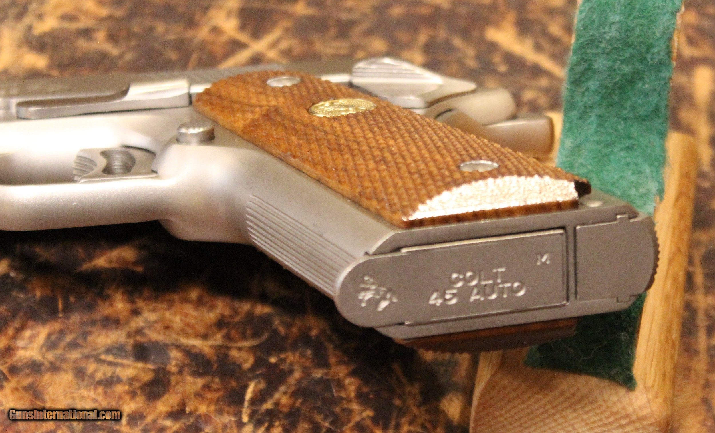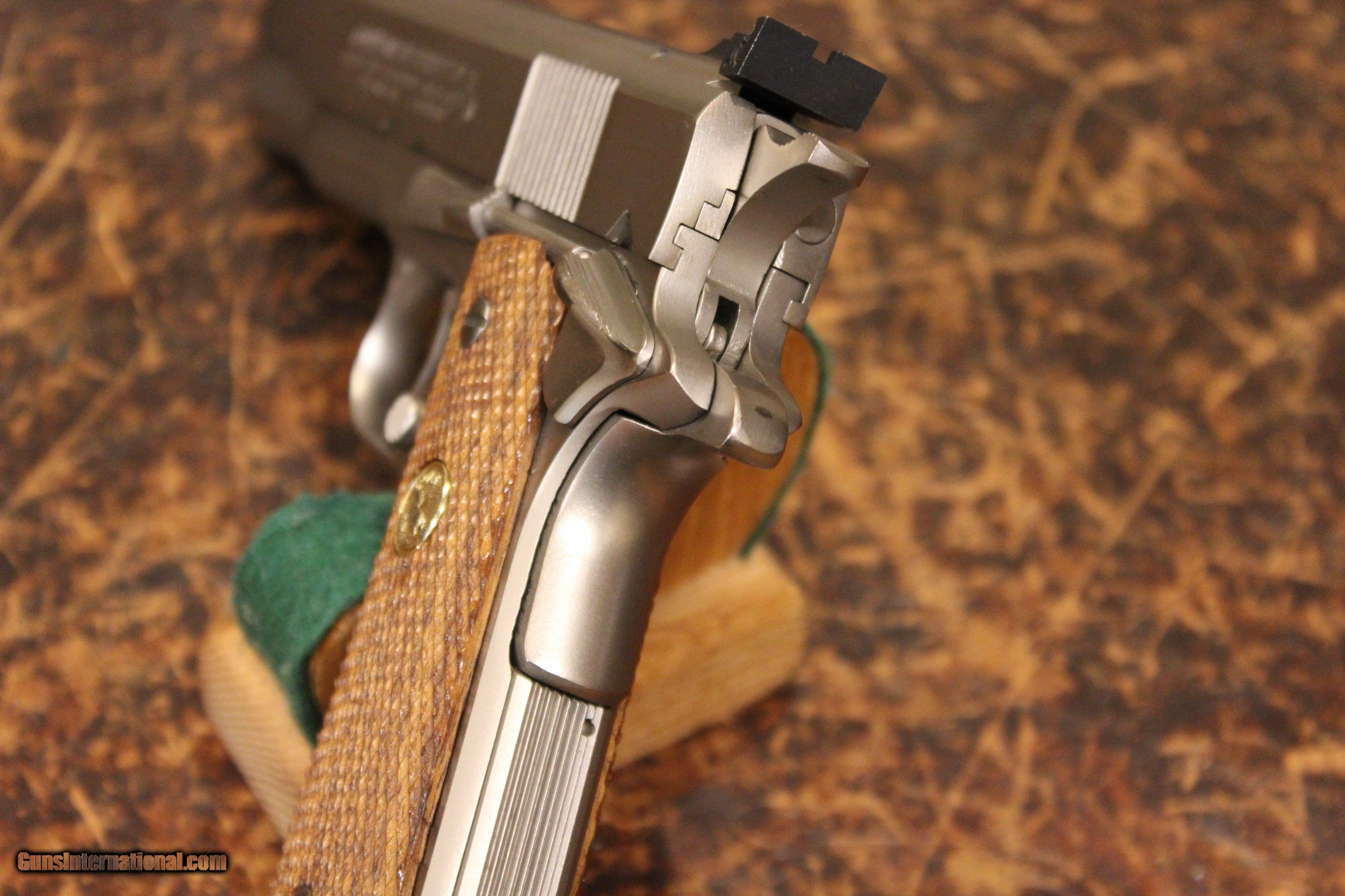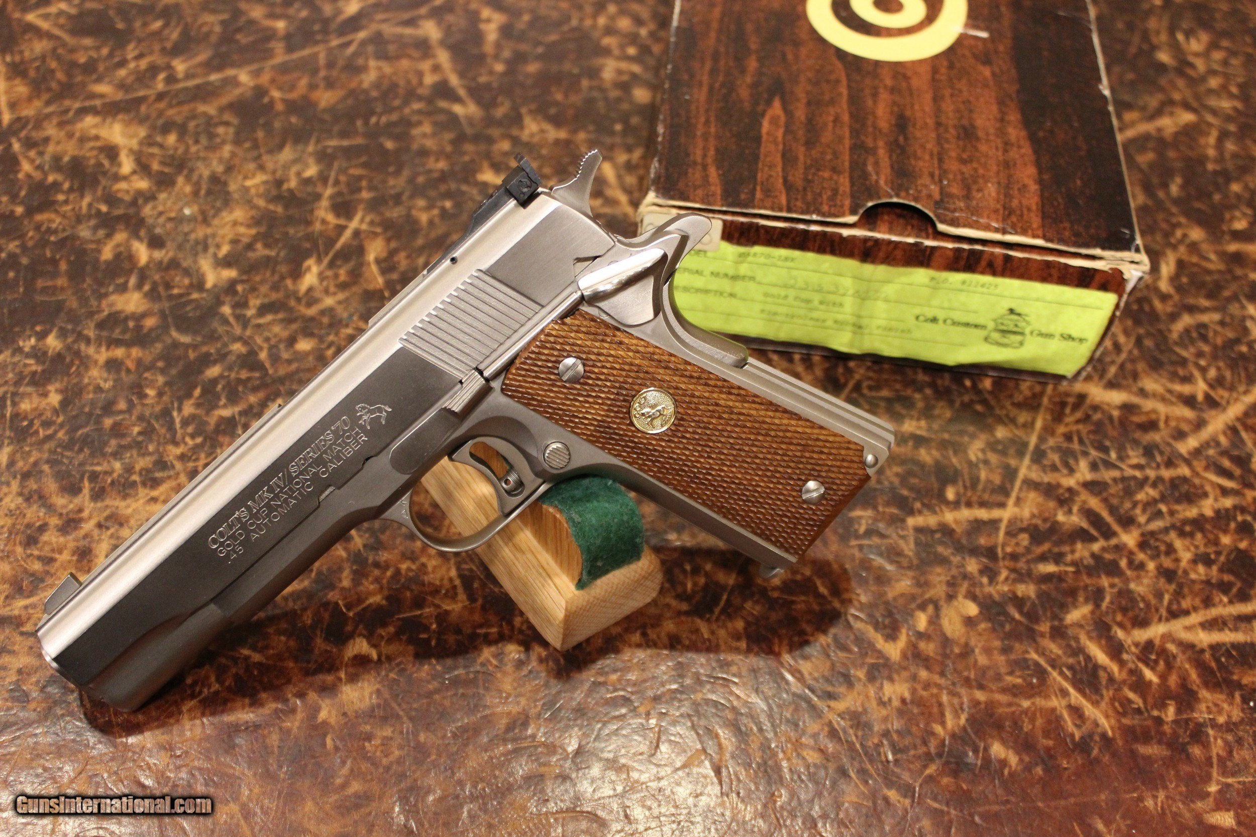 Description: COLT GOLD CUP NATIONAL MATCH IN .45 ACP MATCH AND HARD TO FIND ELECTROLESS NICKEL FROM THE CUSTOM SHOP IN 1982 GUN IS 98% WITH BOX AND PAPERWORK. SOLD |