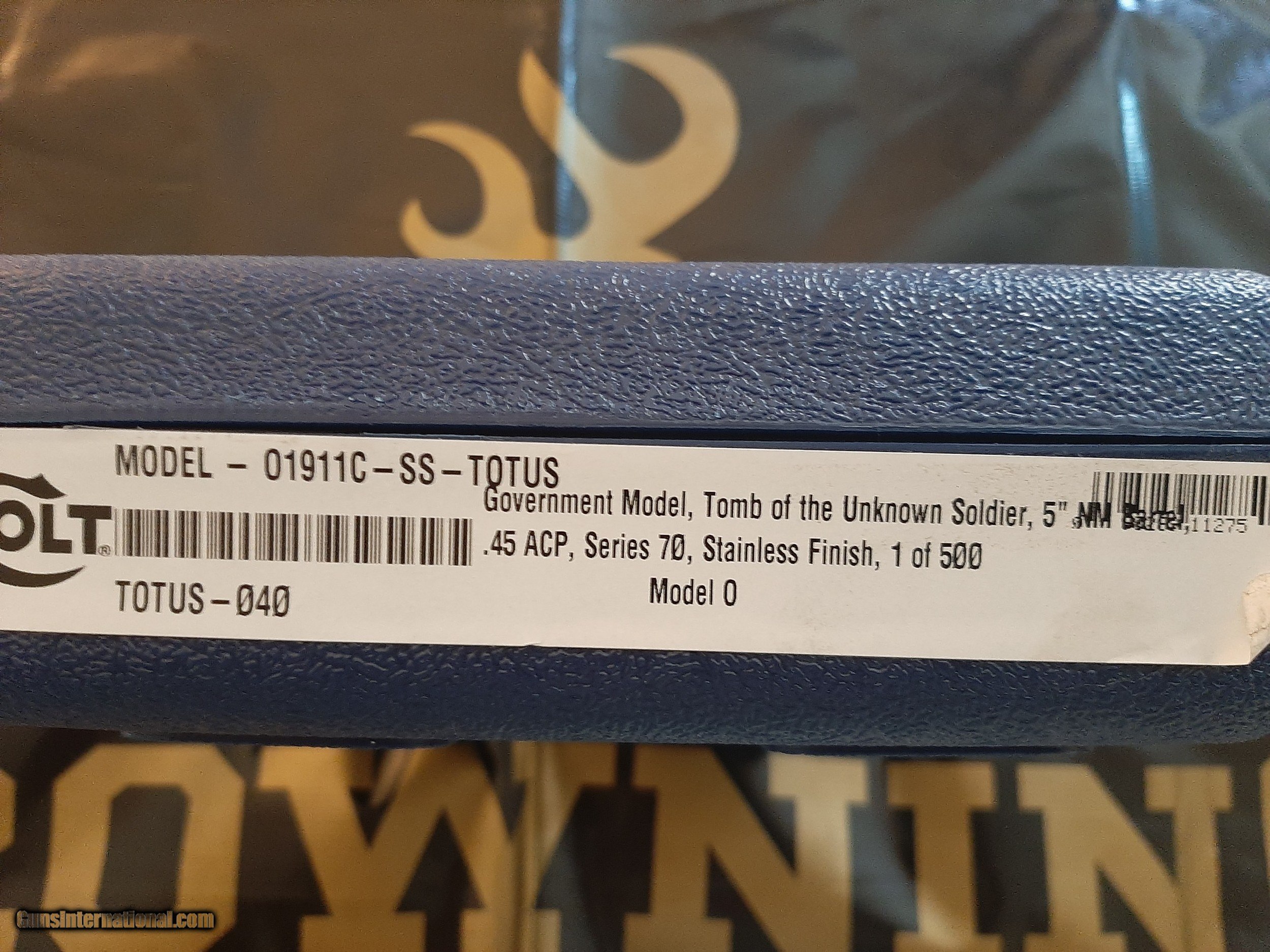 Description: Colt Talo Tomb of the Unknown Soldier in 45ACP that is NIC W/Paperwork. Only 500 Produced. Credit Cards add 3%. Shipping and Insurance is 35.00 SOLD Handgun Caliber: .45 ACP (.45 Auto) |