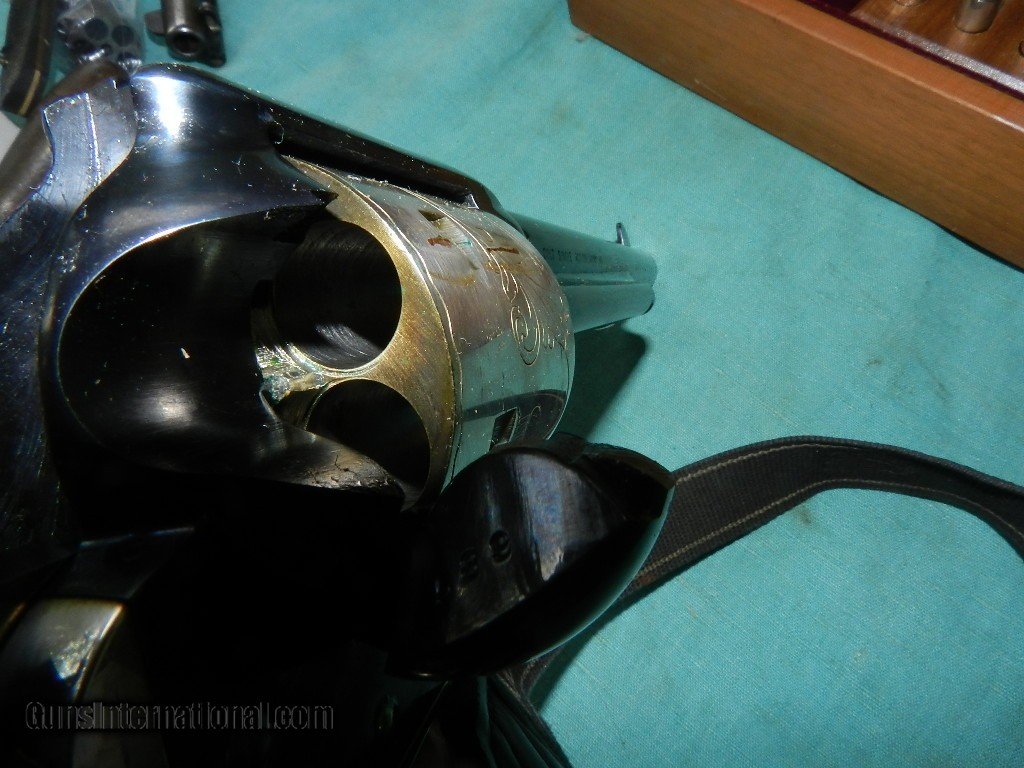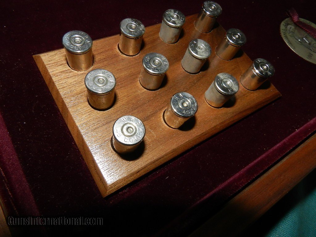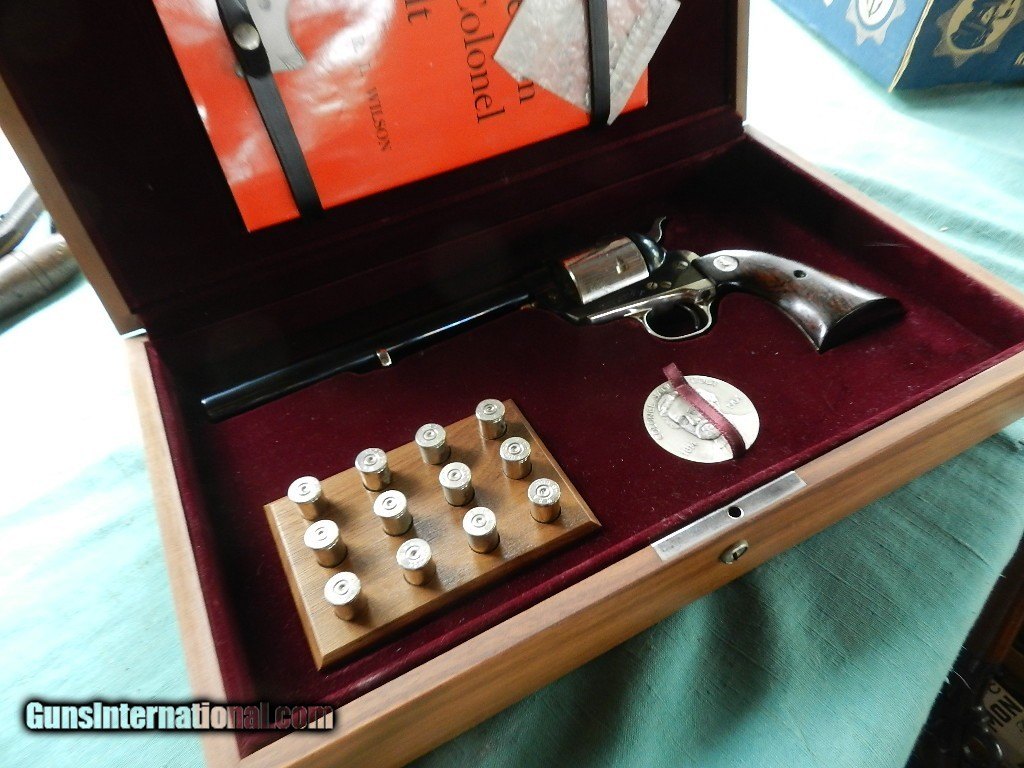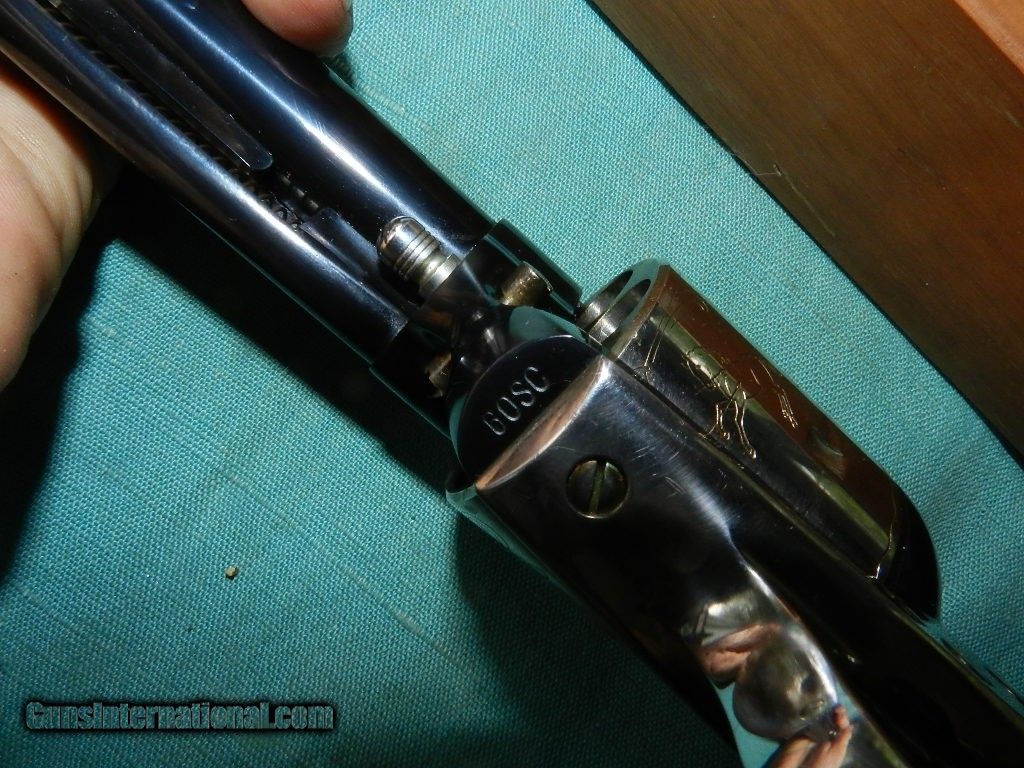 Description: SOLD 1 OF 5000 COL. SAM COLT 1814-1964 .45 COLT CAL. SINGLE ACTION ARMY PISTOL IN BOX. w/ BOOK, & ACCESSORIES. 7.5" BARREL, 100% CONDITION. SER. No. 60 SC FFL REQUIRED.FFL or C&R Early Serial number given to a Colt employee,silver cylinder , engraved factory scene, backstrap, trigger guard, cylinder rod, and ejector head alal silver.Box of walnut is good few minor stroage scrapes.. Both keys included, burgundy velvet interior. Lkemnow , not fired greasein the bore. When buying a gun always have it examined by a competent gunsmith before shooting. To buy a gun from me you must get a direct email for me, with details, and shipping cost. We don’t have a web site .I prefer money orders or a check. Item ships when funds come in. I try to keep guns affordable, which means I make less money than most dealers. You won’t get altitude sickness, or nose bleed, with my prices! I consistently have the best selection of older guns If you attempt to buy, you must still contact us for details . Best to email to buy. Sometimes a local person can stop buy and purchase before the gun is removed. Sometimes not home to get calls. Some guns are required shipment to a gun dealer near you for a transfer to you when it arrives. Otherwise many older or black powder guns ship to your door. With the widest selection of older guns at great prices, We don’t have a store, and sell on the internet only. I’m easy to get along with. Thank You. SOLD Curio/Relic: Yes |