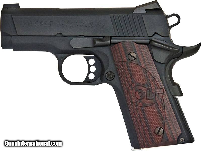 Description: NEW IN STOCK Colt's Manufacturing Defender, Compact 1911, Semi-automatic, Metal Frame Pistol, 45ACP, 3" Barrel, Alloy, Blued Finish, G10 Grips, Novak Nights Sights, 7 Rounds, 1 Magazine O7800XE