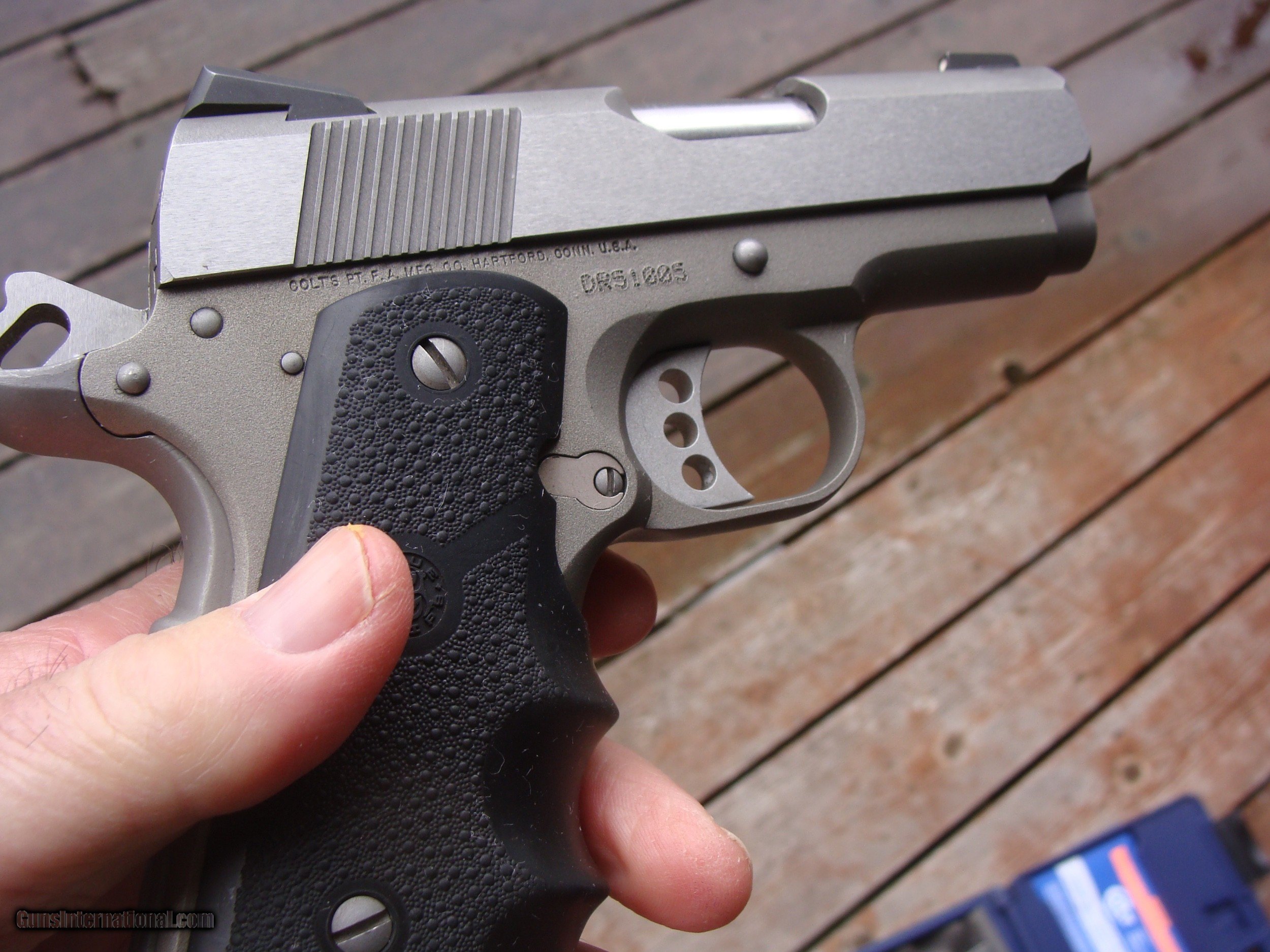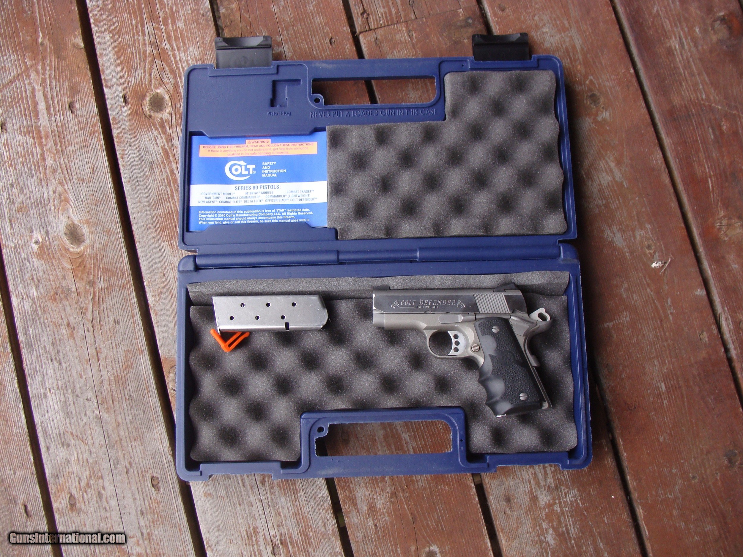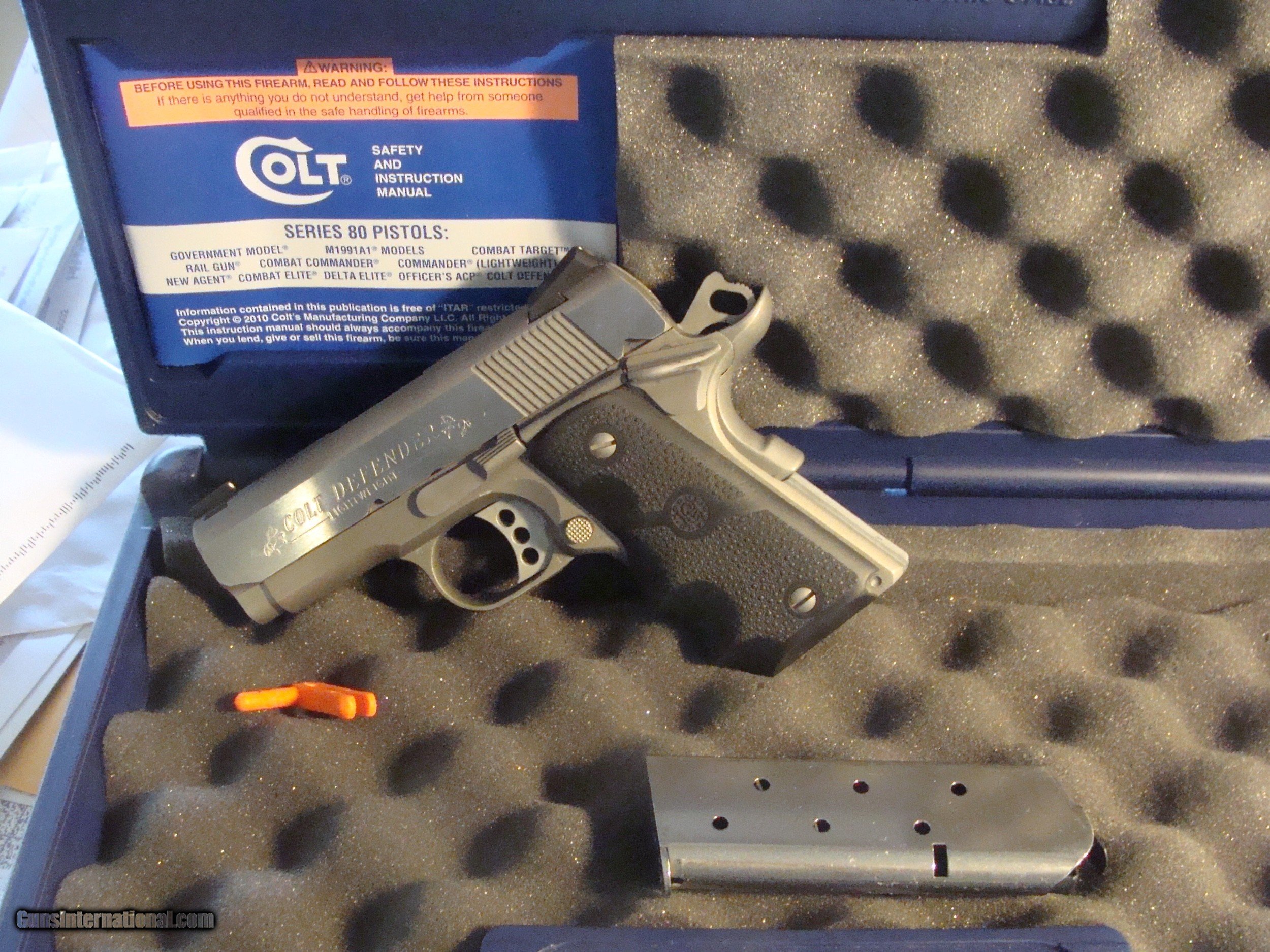 Description: This gun is approx as new and not yet broken in . Only the most faint mark distinquish it from bing in brand new cond.. Comes with correct properly serialized factory box , manuals and one extra mag. These now retail in the 1100.00 range ....and break it in yourself as you would a new one. Shipping will be $23.00 Priority to any location in the lower 48 States, more to AK and HI The following is from Colt's : " The Colt Defender™ pistol is a carry-ready 1911 in a compact size. The Lightweight Aluminum Frame is finished in a Matte Stainless Steel finish, topped with a Forged Stainless Steel slide for a pistol that looks as good as it conceals. Grip Safety make this small pistol very comfortable to shoot." Specs: Action: Single Action Hammer Fired Semi-Auto Barrel Length: 3" Capacity: 7+1 Safety: Thumb Safety, Grip Safety, Firing Pin Safety Grips: G10 Black Cherry Carry Grips Finish: Blue Stock: Overall Length: 6.75/24oz unloaded Features: 3-Hole Aluminum Trigger/ Combat Hammer WE ARE AN FFL 01 IN THE NORTHEAST WHERE MANY FINE US MADE GUNS WERE PRODUCED. WE OFTEN GET FAIRLY HARD TO FIND AND OFTEN LIGHTLY USED AND UNIQUE GUNS. WE SOMETIMES GO CONSIDERABLE DISTANCES TO GET THESE. WE HAVE OVER 1500 SALES ON ALL SITES WITH AN A+ RATING ON ALL (WE ALSO KEEP AN INVENTORY OF OLDER PERIOD CORRECT SCOPES; CALL WITH NEEDS) WE ARE HAPPY TO TAKE CONSIGNMENT GUNS AND COLLECTIONS OR WILL BUY YOURS OUTRIGHT. WE SOMETIMES ARE EMPLOYED FOR ESTATE PURPOSES AND VALUATIONS. CT RESIDENTS MUST CONTACT US TO UNDERSTAND OUR IN STATE TRANSFER POLICIES. WE CAN TAKE A CREDIT CARD HOWEVER THERE IS A 3% ADD ON BASED ON THE TOTAL FOR USE OF A CARD. IT IS ALWAYS THE BUYERS RESPONSIBILITY TO GET US A COPY OF YOUR RECEIVING FFL'S LIC AND WE REQUIRE A COPY OF YOUR PHOTO ID BEFORE THE GUN SHIPS YOU MUST CALL YOUR FFL.WE DO NOT CALL FOR YOU. LAYAWAY PURCHASES NOT COMPLETED OR ANY RETURNED ITEM UNLESS NOT AS DESCRIBED ARE SUBJECT TO A 10% RELISTING/RESTOCKING FEE AND MUST BE RETURNED WITH NO MARKS OR SCRATCHES, SENT BACK INSURED, PRIORITY SIGNATURE REQUIRED WE DO NOT OFFER AN INSPECTION PERIOD PER SE HOWEVER GUNS MAY BE RETURNED IF NOT EXACTLY AS DESCRIBED UNDER NO CIRCUMSTANCE MAY ANY GUN TO BE RETURNED HAVE BEEN REMOVED AT ANY TIME FROM RECEIVING FFL DEALERS PREMISIS AND RETURNS MUST 1ST BE APPROVED BY US IN SOLD |