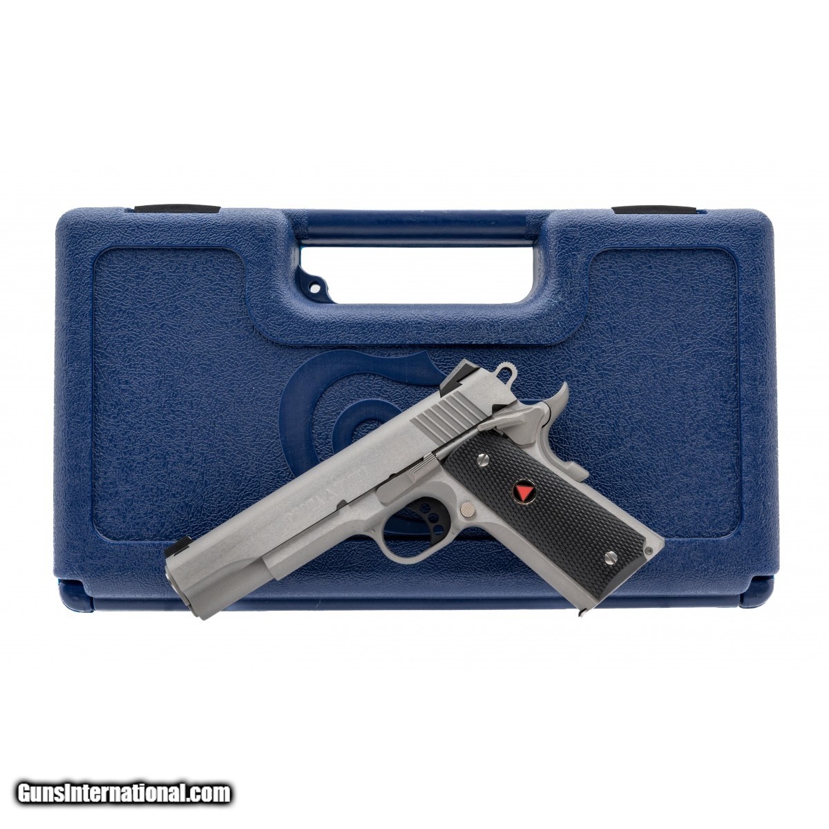 SN: DS40657. Modern production. 10mm with a 5 ""barrel, bore is excellent. Government 1911 with stainless steel frame, 3 white dot sights, extended beavertail and rubber Delta grips. Overall excellent condition. Comes with box. (Consignment)