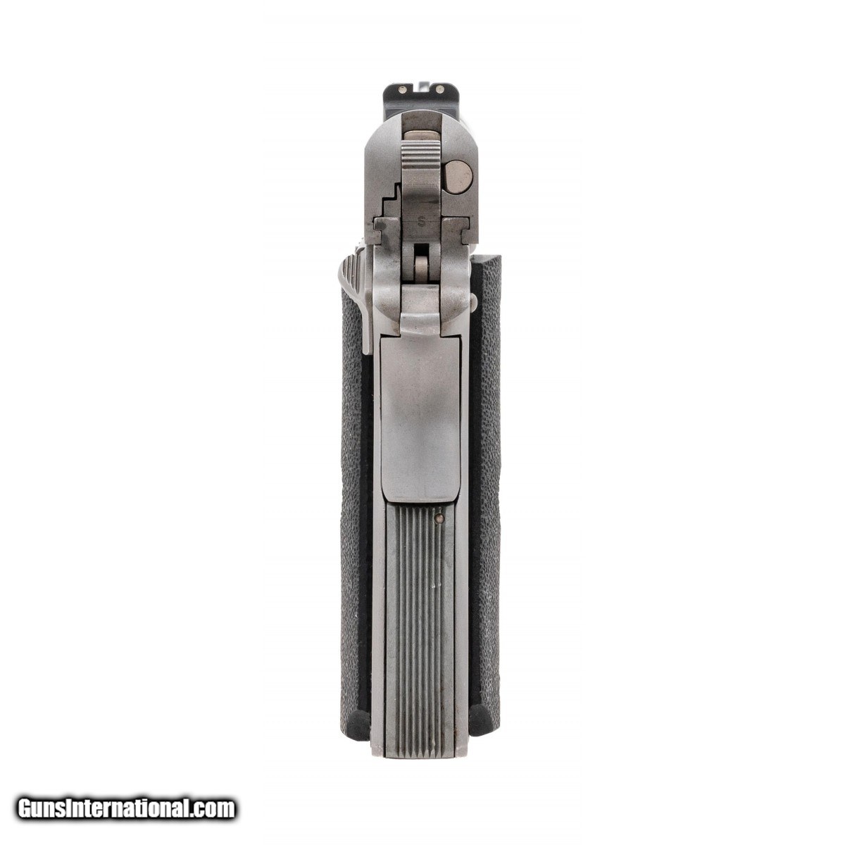 Description: " SN: C19731. Made in 1989. 10MM with a 5"" barrel. Bore is very good. Steel frame, Stainless Colt pistol. Rubber grips are in very good condition with minimal handling wear. Overall very good condition. SOLD |