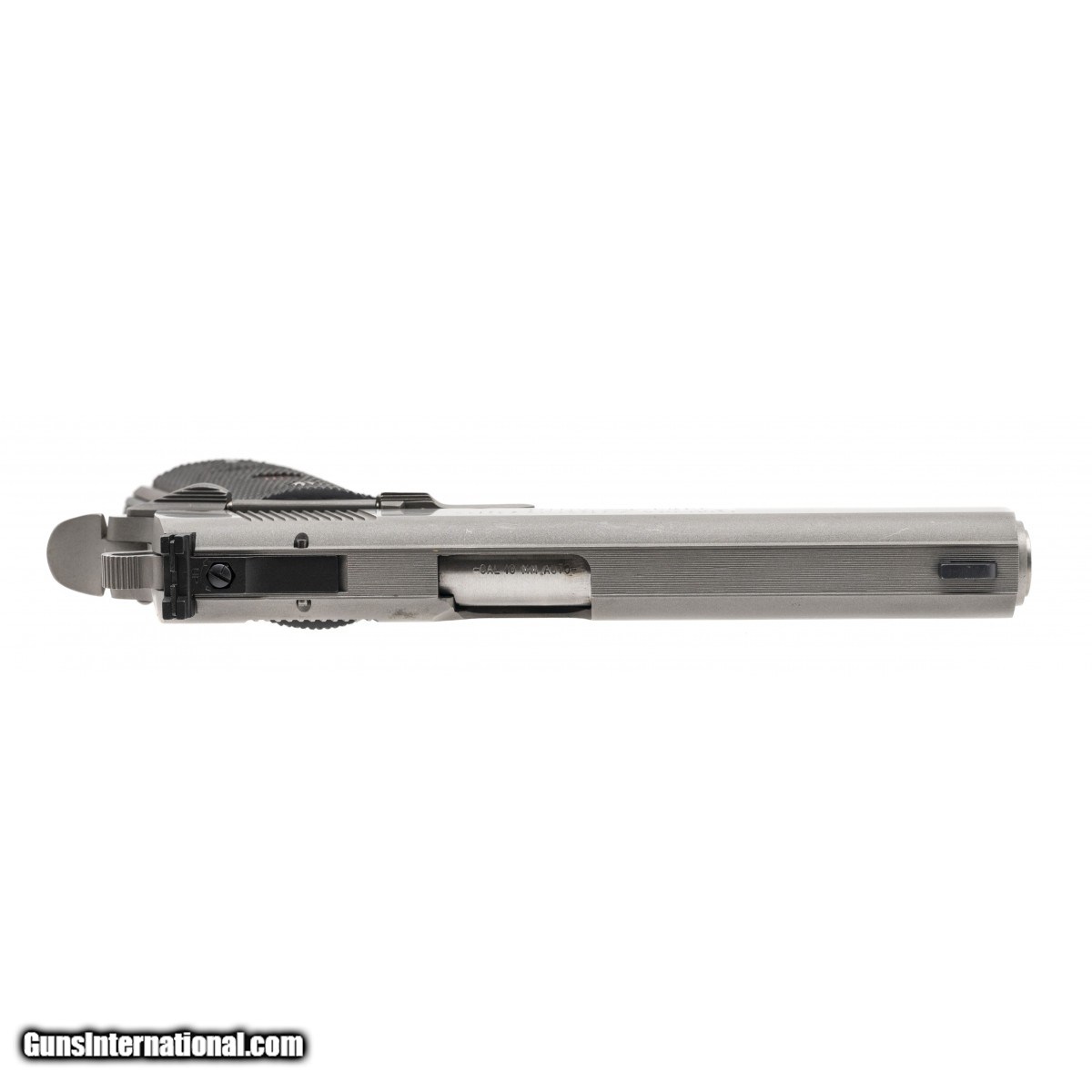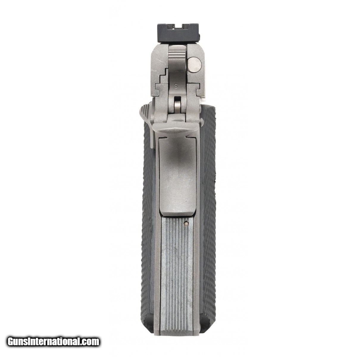 SN: DG02050E. Made in 1995, 10mm with a 5"" barrel. Stainless steel target 1911 in scarce 10mm caliber. Shows wear, very good condition overall. Consignment