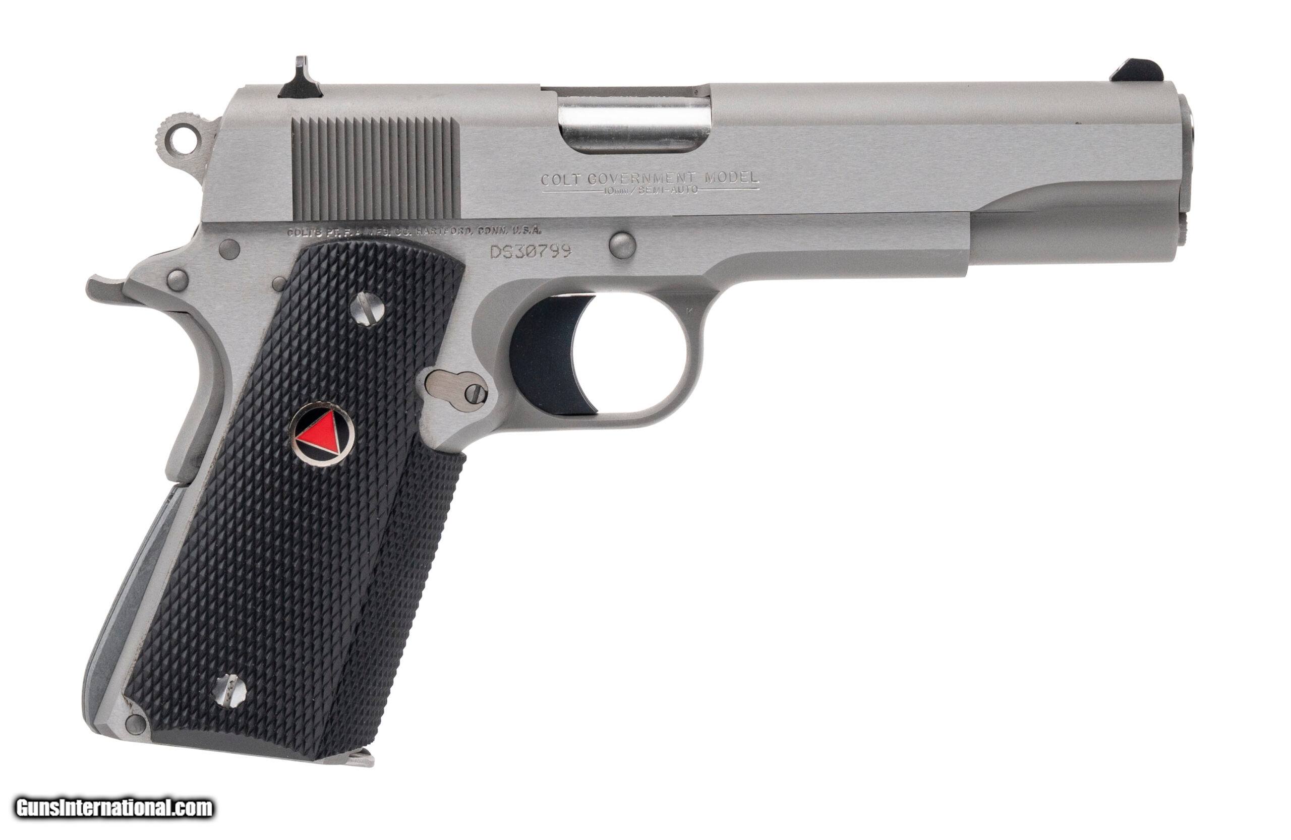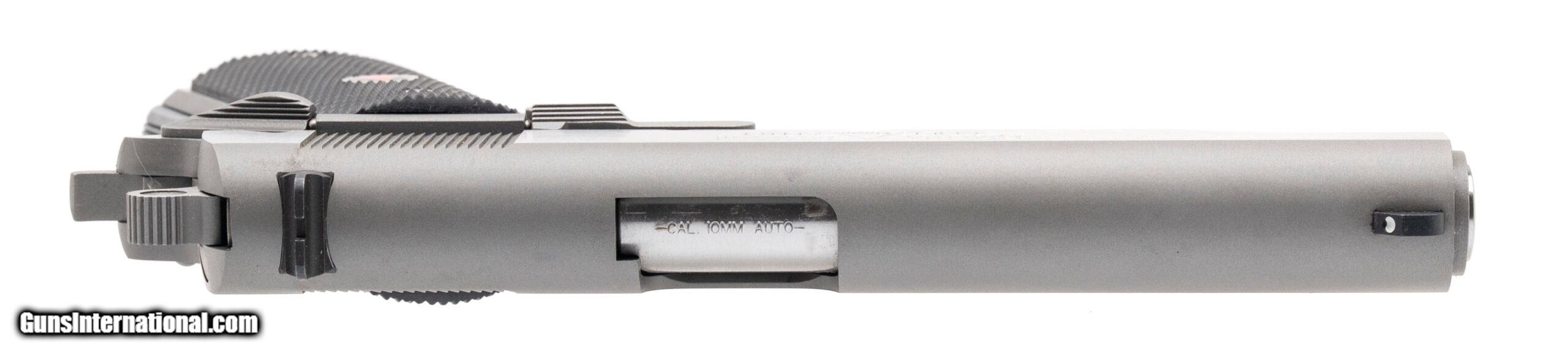 Description: "SN: DS30799, modern production stainless steel semi-auto pistol chambered in 10mm with a 5" barrel, 3 dot sights and original wrap around checkered rubber grips. Overall in near excellent condition with an excellent bore. Comes with case & 2 extra magazines. Dallas Location Price: $1,095.00 Contact Seller |