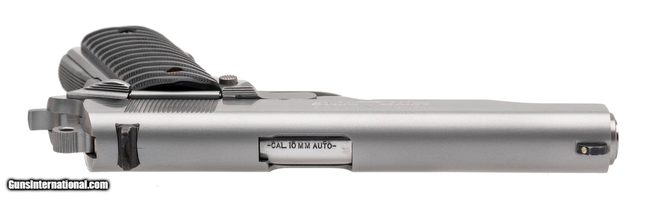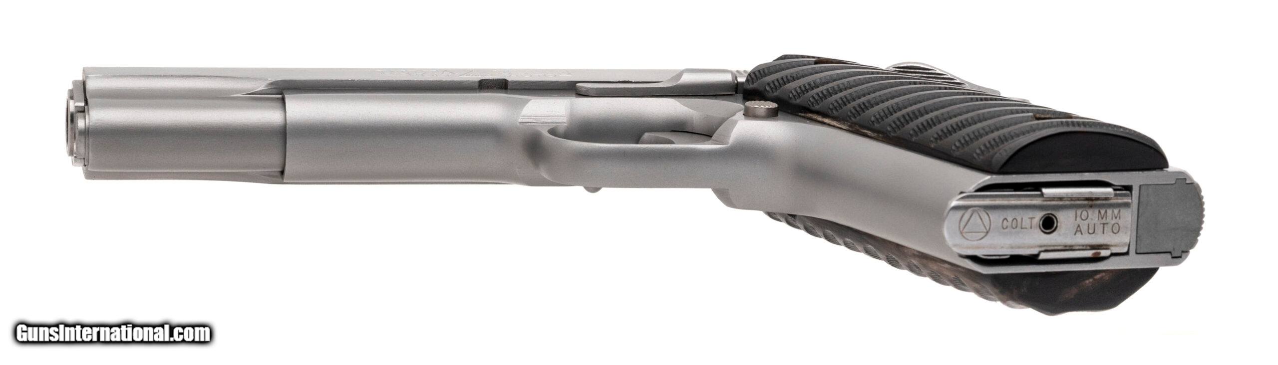 Description: "SN: DS07975. 1989 production, 10mm with a 5"" barrel. Bore is bright with strong rifling. Stainless steel Government 1911 pistol with Buffalo horn grips. Metal shows light marks but the overall condition is very good. Price: $1,395.00 Contact Seller |