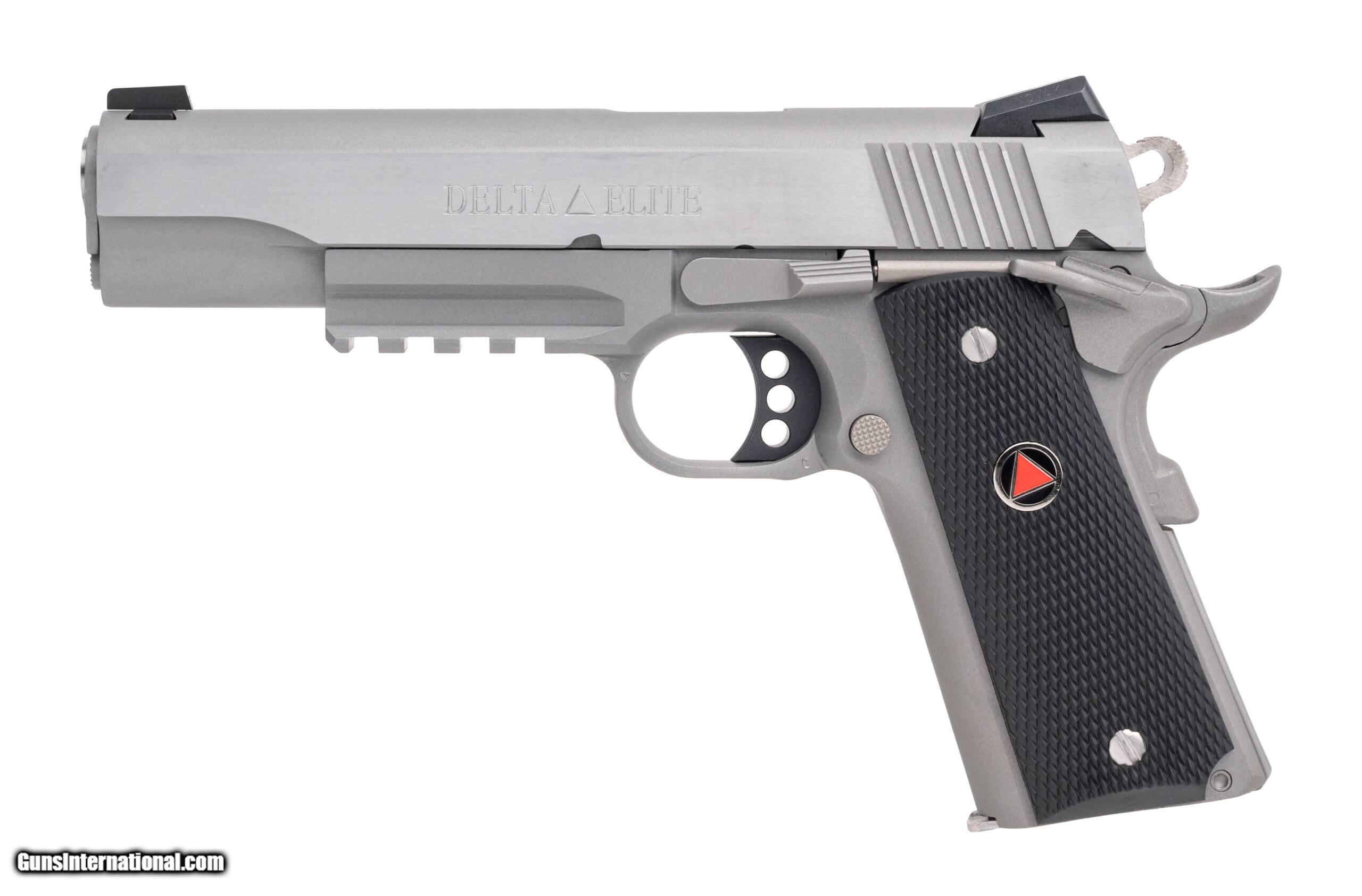 Description: "Delta Elite MKIV 1911 Pistol with a 5"" Barrel. Government Size, Stainless Steel, Checkered Rubber Grips, Accessory Rail, and 3-Dot Novak Sights. Includes 1-8rd Magazine. NEW. UPC: 098289111388 (STOCK PHOTO) Price: $1,389.95 Contact Seller |