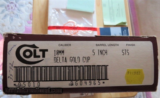 Colt 1911 Delta Elite Gold Cup 10mm; Unfired with original Box and Paperwork