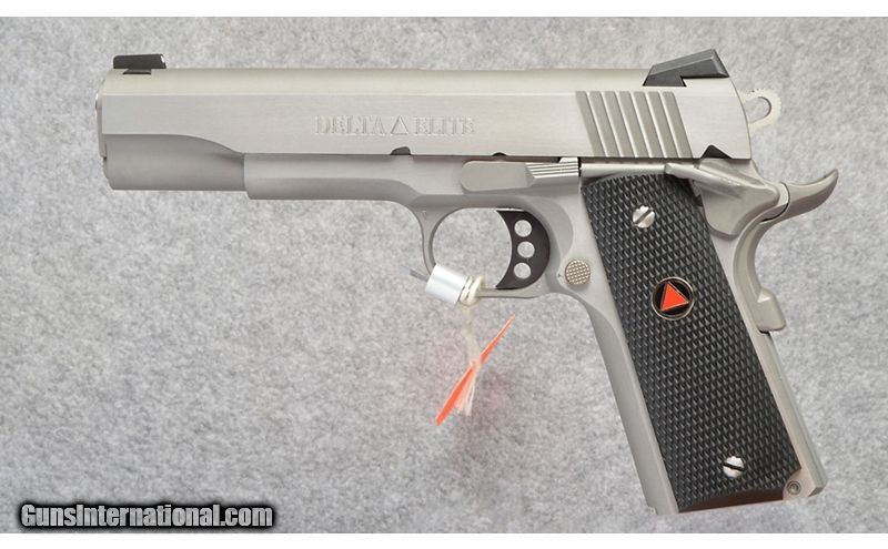 Description: Current production Delta Elite in 10 mm Auto, Stainless construction, composite grips with Delta medallions. New in factory box. 10mm Auto SOLD Metal Condition: Matte Stainless Steel w/ Polished Sides Bore Condition: New Barrels: 5 Inch Triggers: Single Action Auto Weight: 40 oz Sights: "Novak Dovetailed, 3-Dot Sights. Item Location: Buda, TX |