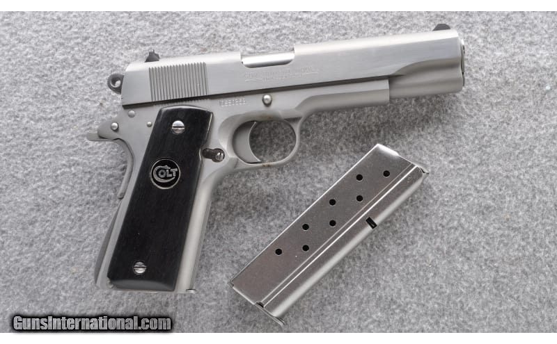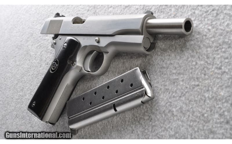 Description: This Colt Delta Elite was made in 1989 and comes in the original plastic case with extra magazine (no manual). Features a beveled magazine well, checkered mainspring housing and serrated front strap. These pistols were the first 1,000 stainless steel 10 mm Delta Elite pistol produced by Colt. They are stamped with a serial number range from 10SS0001 through 10SS1000. 10mm Auto SOLD Chambers: 10 mm Automatic in nine round magazines Metal Condition: "Very good, showing proper care and little use Wood Condition: "Grip panels are in good condition, with a bit of corrosion on the medallions Bore Condition: Bright & Sharp Barrels: 5" Stainless Triggers: Solid aluminum Weight: 40 Oz. Sights: Low profile three dot (one white dot is missing on the rear sight) Item Location: Grand Junction, CO |