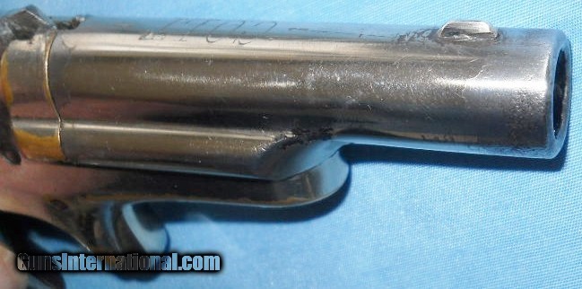 Description: ANTIQUE COLT 3rd MODEL THUER .41 RF SIDE SWING DERRINGER. 2 1/2" BARREL. THIS IS AN EARLY STANDARD MODEL WITH FIRST-TYPE HIGH HAMMER. METAL SURFACES RETAIN ABOUT 85% ORIGINAL NICKLE WITH WEAR AROUND THE MUZZLE & OTHER HIGH POINTS ON THE FRAME. CRISP "COLT" BARREL MARKING. WALNUT GRIPS RATE EXCELLENT SHOWING SOME FINE GRAIN FIGURE WITH BOTH PANELS CORRECTLY NUMBERED TO THE GUN. ACTION WORKS PROPERLY CRISP & ROBUST WITH 2 CLICK HAMMER. VERY GOOD EXAMPLE OVERALL, AS PICTURED. $12.00 S&H DIRECT TO BUYER ANYWHERE THAT'S OK. SEE ALL "ESTATE ANTIQUES" LISTINGS FOR MORE SCARCE ITEMS AT SENSIBLE PRICES FROM OLD TIME COLLECTIONS. SOLD Antique: Yes Manufacturer: COLT Model: THUER 3rd MODEL Serial Number: 10597 Barrel Length: 2 1/2 Caliber Info: .41 RIMFIRE Bore: SMALL PITTS Chambers: CLEAR Ejectors: WORKING Condition: VERY GOOD AS PICTURED Metal Condition: ORIGINAL Wood Condition: EXCELLENT Bore Condition: DISTINCT RIFLING Barrel Type: ROUND Action: WORKING Triggers: SPUR Finish: ORIGINAL AGED Manufacture Date: 1880s ERA |