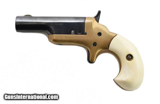 Colt 3rd Model Thuer Derringer .41 Rimfire caliber pistol. Very attractive gun with ivory grips. Barrel has been refinished and the brass has been cleaned. This is an early model with the high hammer and tight curl to the grips.