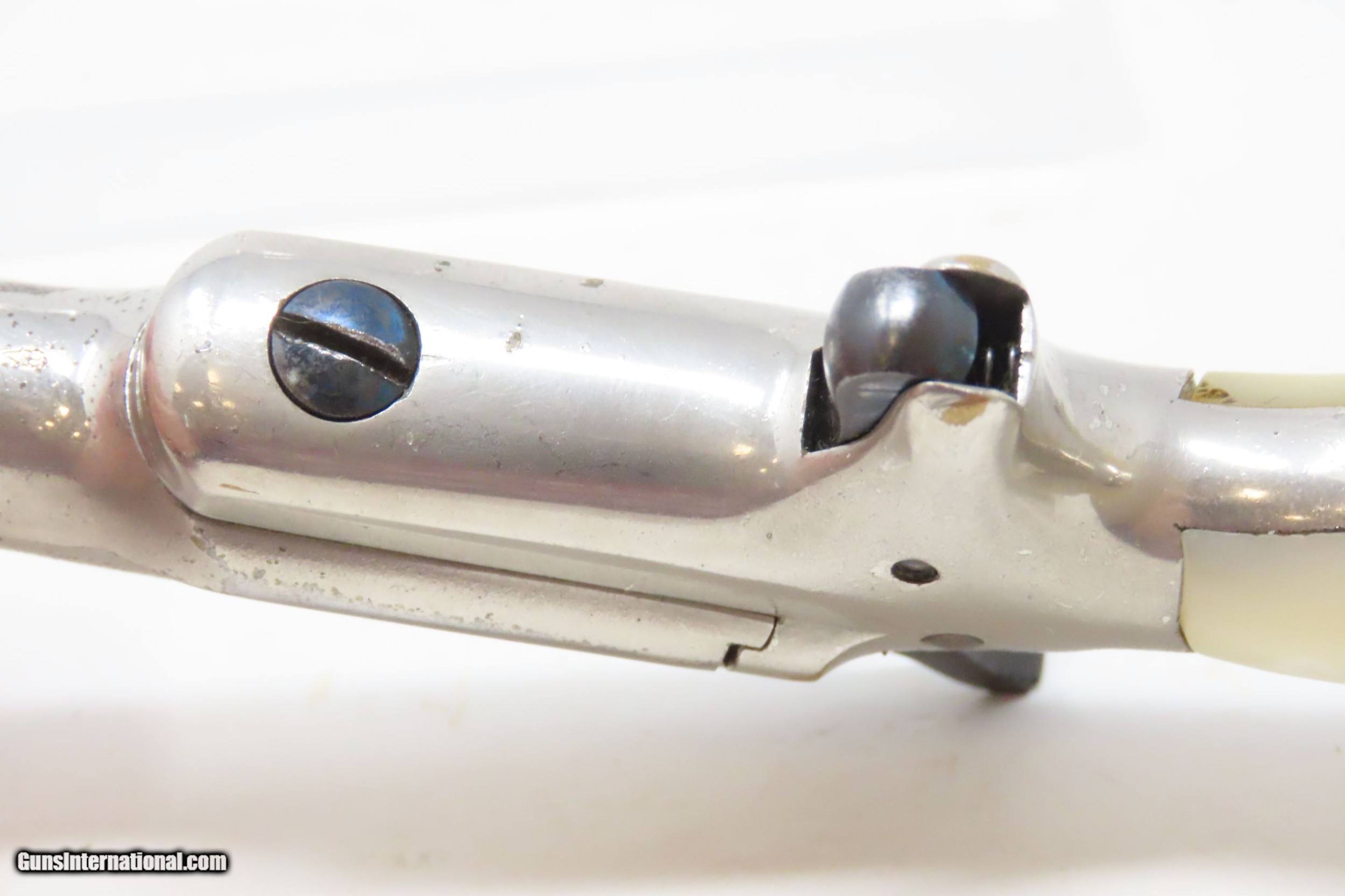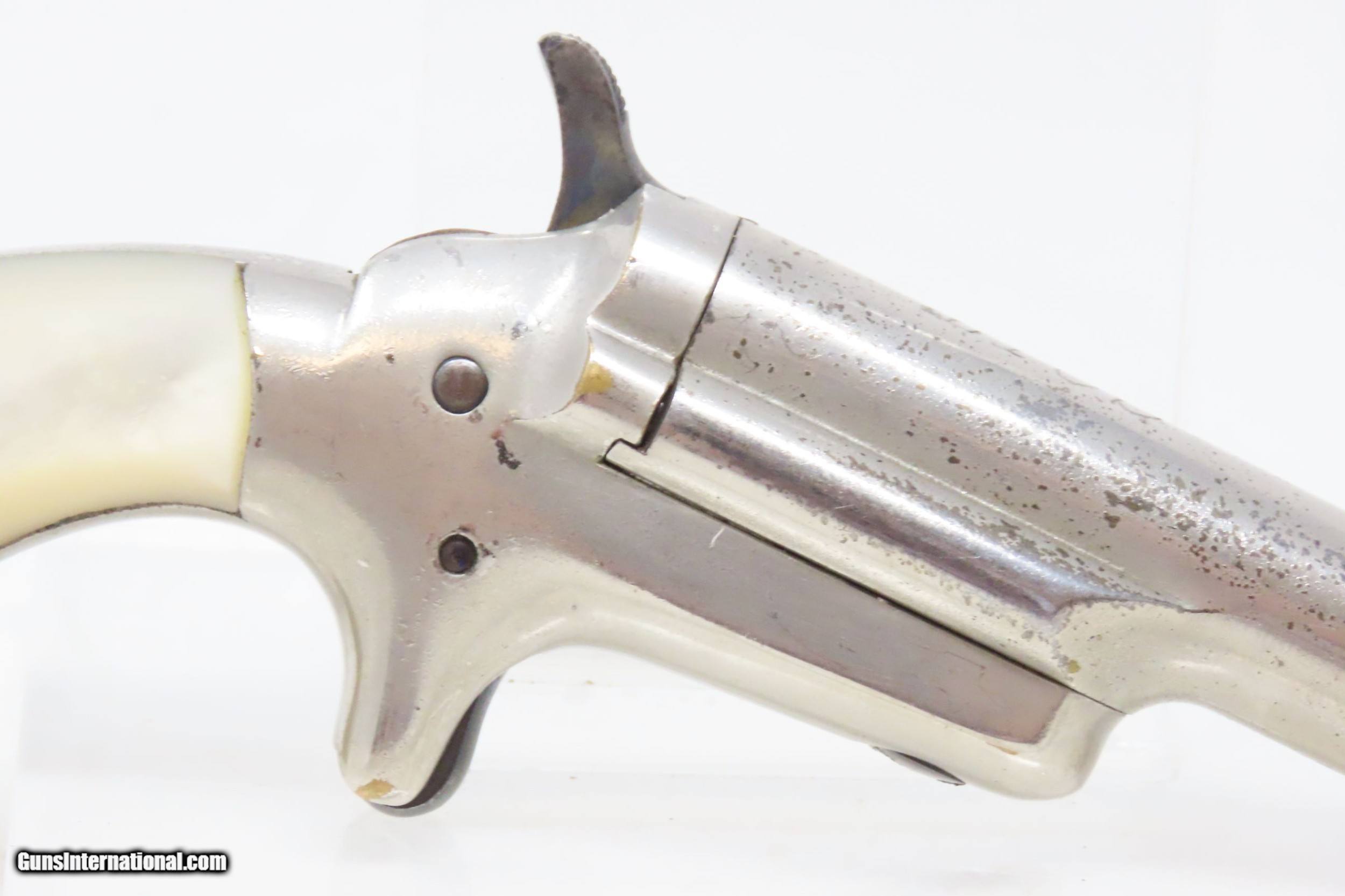 Description: British Proofed COLT Third Model “THUER”.41 Cal. RF NEW MODEL Deringer C&R NICKEL PLATED Self-Defense Pistol with PEARL GRIPS Here we present a C&R British Proofed Colt Third Model Thuer Deringer, also known as the New Model Deringer, made between 1875 and 1912. During this span, Colt manufactured 45,000 of these deringers. The serial numbers series ran from 1 to 45,000, though the yearly production numbers are not known. In 1870 Colt’s purchased National Arms Company and began producing a Deringer pistol based on its design. This became Colt’s First Model Deringer and it was Colt’s first single shot pistol. It was followed in quick succession by a very similar pistol, called Colt’s Second Model Deringer. Both of these pistols were chambered for .41 rimfire and featured a barrel that rotated counter-clockwise for loading and unloading. In the same year, a Colt employee, F. Alexander Thuer, patented an altogether different design. His Deringer had a barrel that pivoted to the right on a vertical axis for loading and unloading. Instead of using a manually operated latch to open, his used a very positive, spring-loaded catch and detent that did not require anything but a firm twist of the barrel. This spring-loaded catch also acted as an automatic ejector, which was very handy for a single shot self-defense pistol. These were sold alongside the other two models as the Third Model Deringer but are now known to many as the Thuer Model. The Thuer was far and away the most successful of the three. These were very refined, very handy conceal and carry pieces all the way through 1912, when semi-automatic firearms took the lion’s share of the market. The overall condition is fine. Original nickel finish. The action is excellent. The bore is bright with sharp rifling. The mother of pearl grips are solid. London proofs. This firearm is classified as a Curio & Relic. Barrel is 2-1/2 inches. Caliber: .41 Rimfire Overall condition as seen in photos. Very Fast. Very Safe. FREE SHIPPING. Will need to be sent to your local FFL or C&R licensee. This firearm is classified as a Curio & Relic. Guaranteed AUTHENTIC & Includes CERTIFICATE OF AUTHENTICITY. ancestryguns $1600 #220276 SOLD Curio/Relic: Yes |