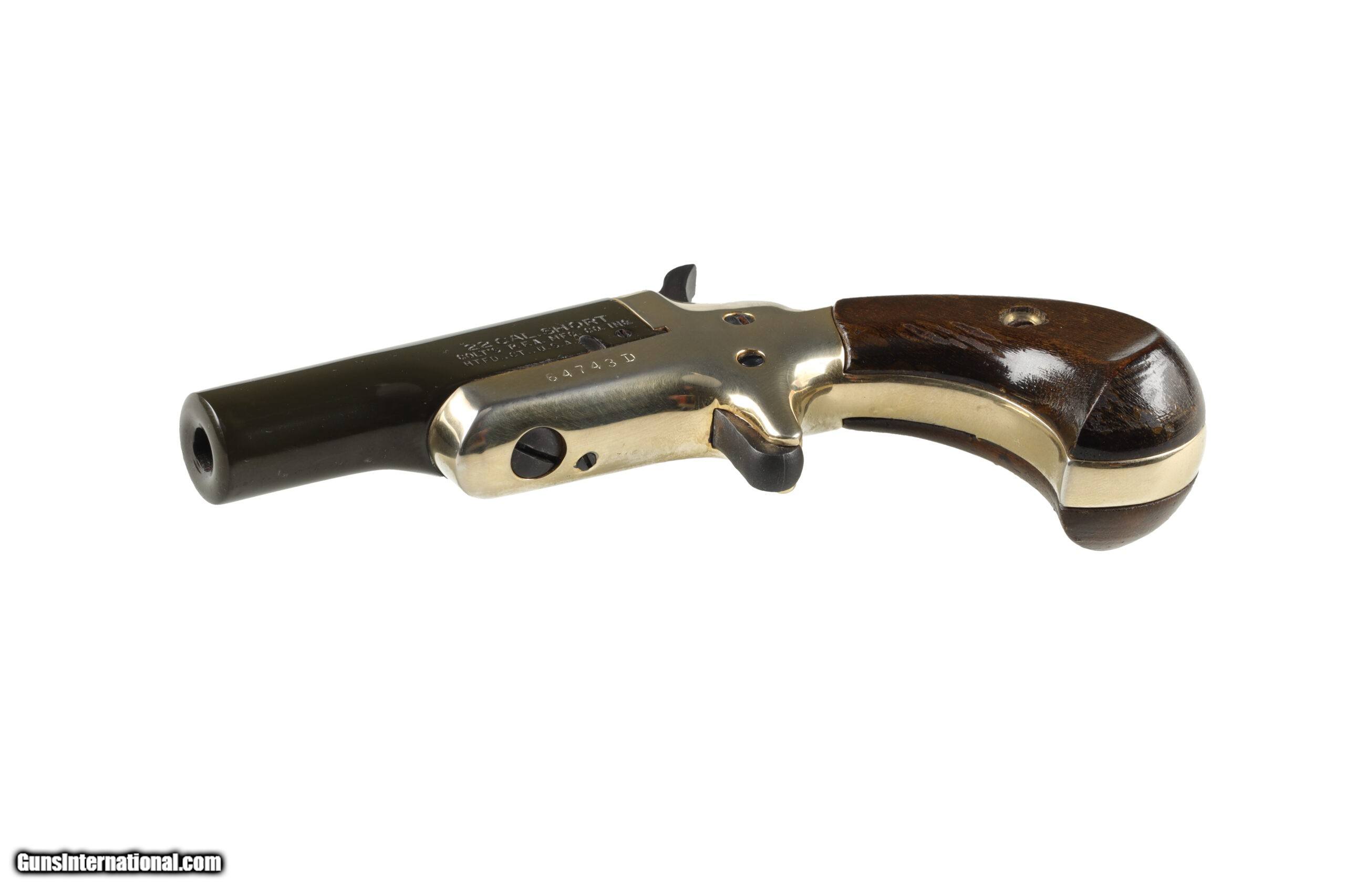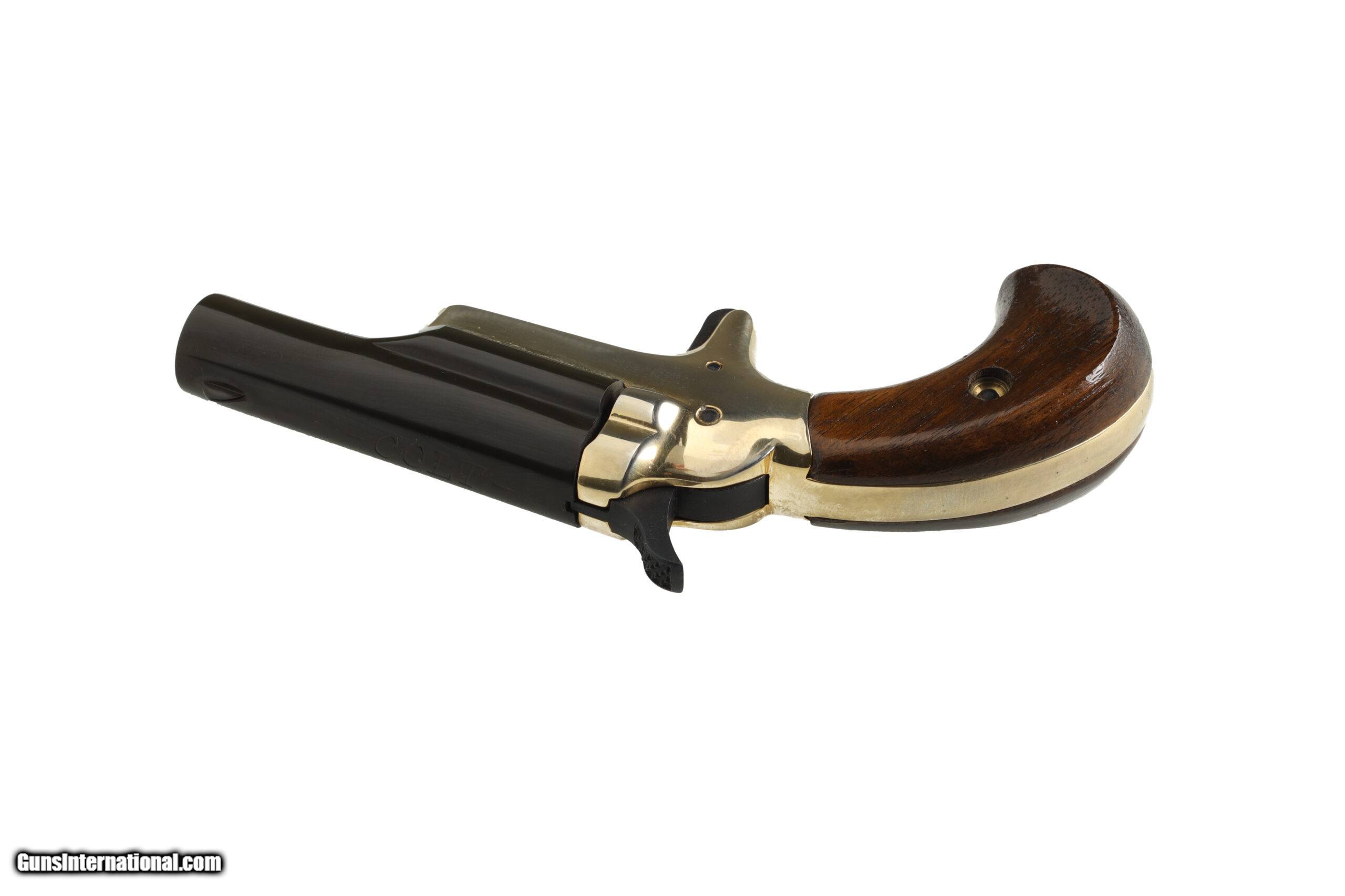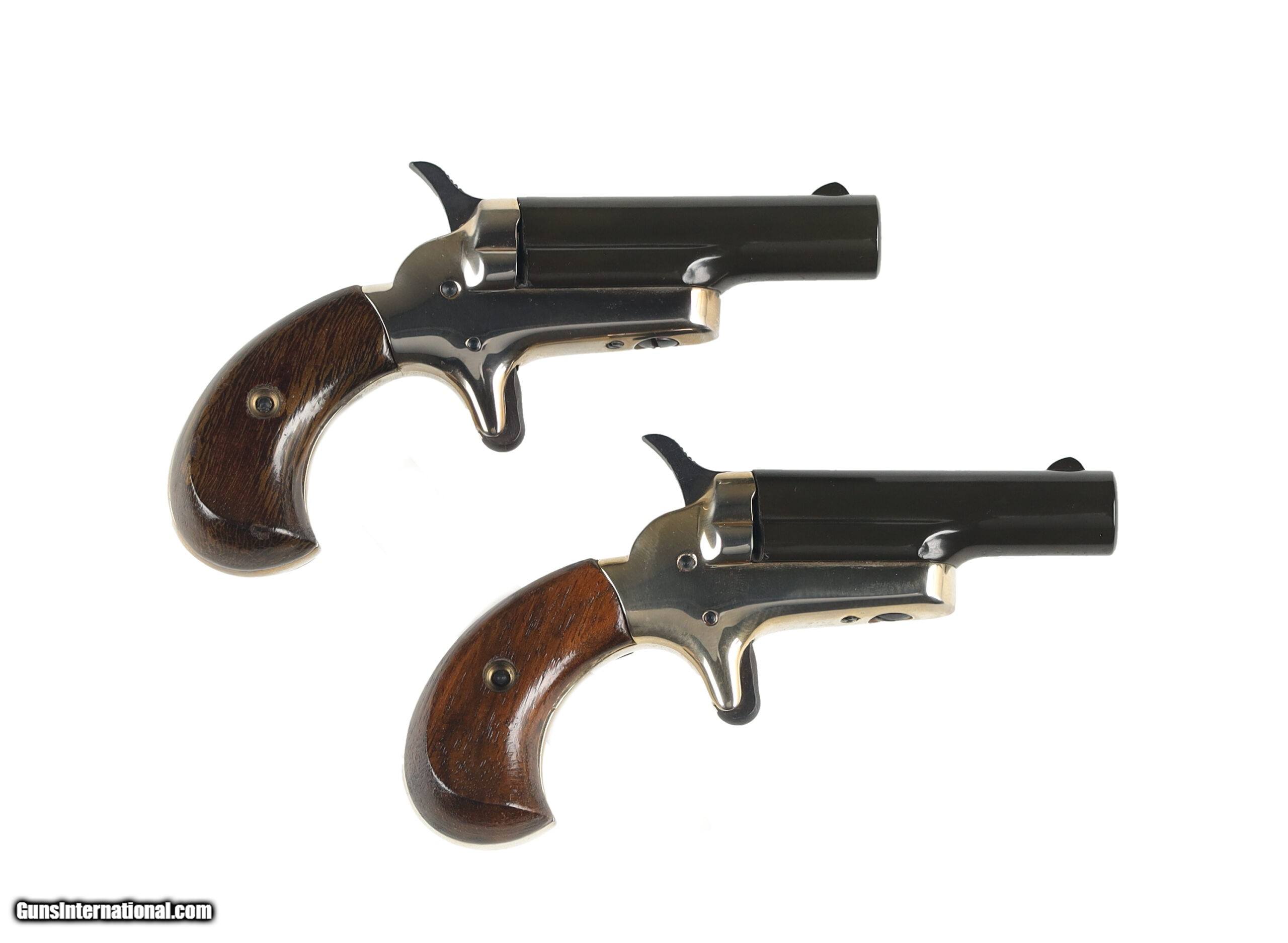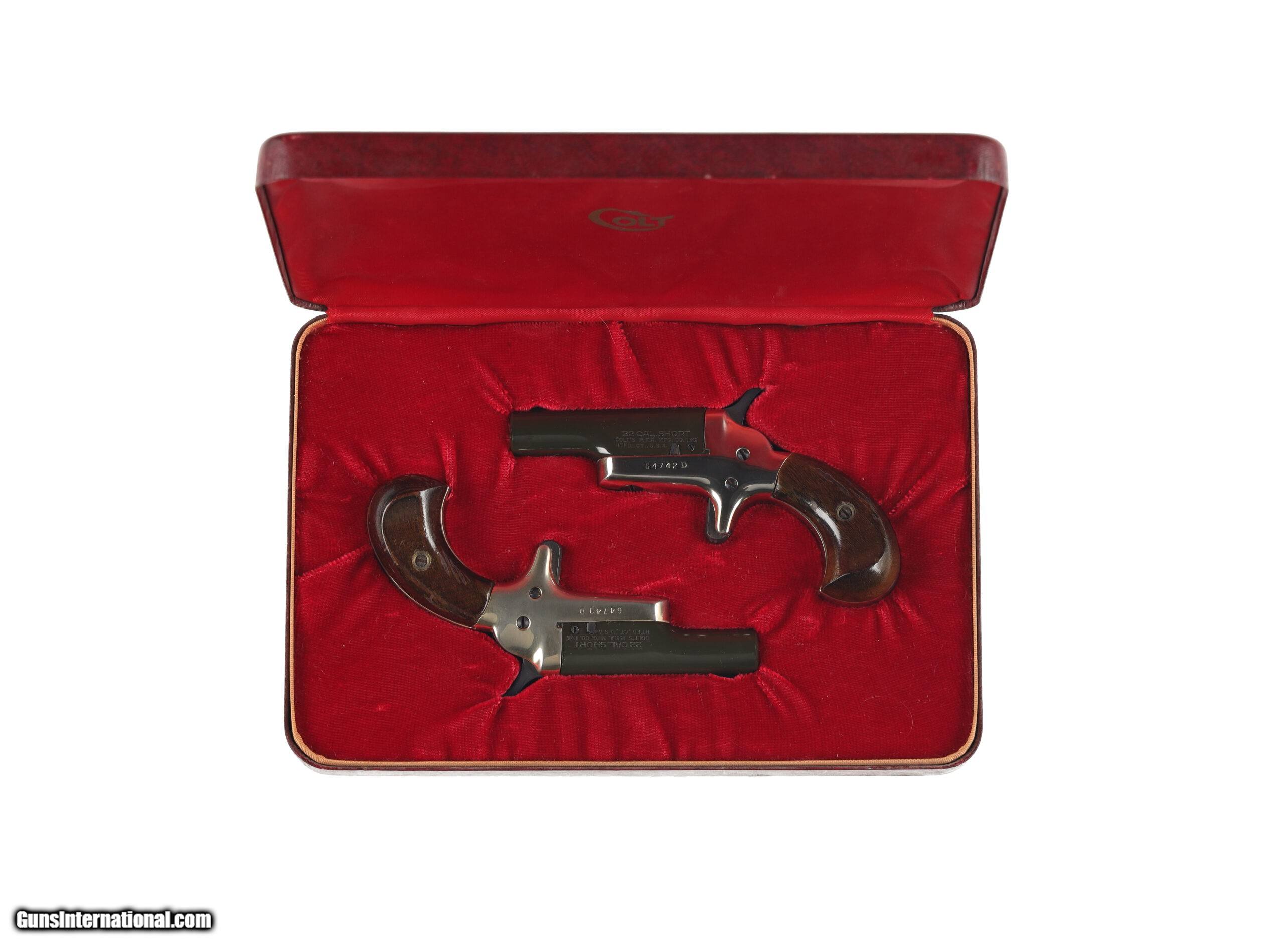 Description: The Cot "Lord" Derringer set is a pair of sequential serial number Model 4 Colt Derringer's. the Model 4 Derringer is a miniaturized version of the very popular Model 3 .41 cal Derringer made until 1912. Overall condition of this pair is excellent, looking to be never fired, with the only wear being some flaking of the varnish on the grips and some blemishes on the case. Manufactured in: USA Action Finish: Coin Metal Finish: Original Barrel Length: 2.5" Barrel Condition: Excellent Stock Finish: Original Stock Condition: Very Good Grip: Pistol Manufacturer: Colt Model: Derringer Caliber Info: .22 Short Condition: Preowned Metal Condition: Excellent Action: Single Shot Triggers: Single Finish: Original Weight: .4 lbs Case: Maker's Case Price: $800.00 Contact Seller |