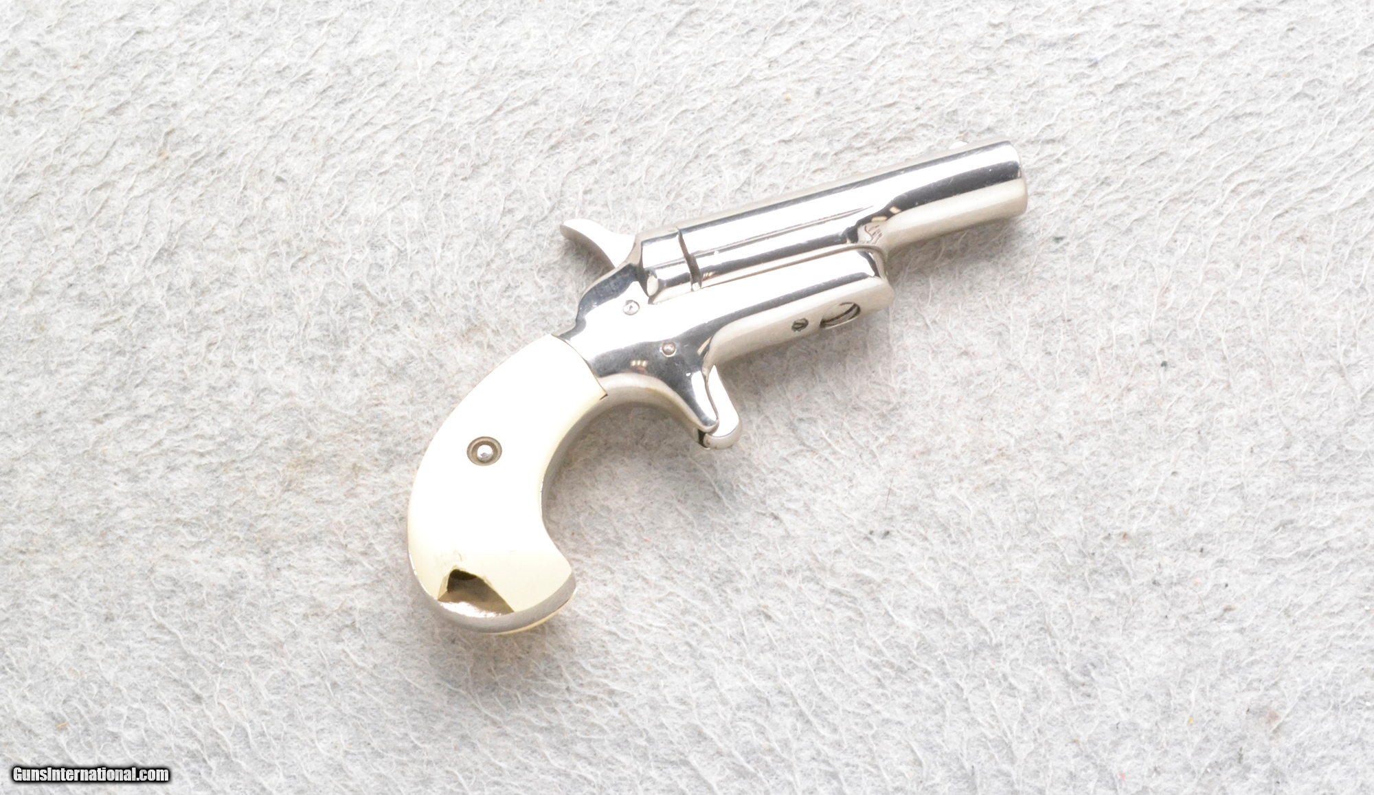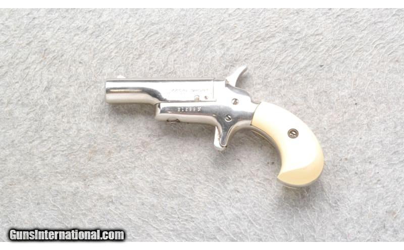 Description: This Colt Model "Single Shot" is a single shot side break open pistol in .22 Short Cal. It has a 2.5 inch barrel with a blade front sight. The grip is a smooth ivory colored plastic. Serial Number 21299N. .22 Short SOLD Chambers: Single shot side break open. Metal Condition: Good. Has some very minor marks. Wood Condition: Right side plastic grip has a piece missing. Bore Condition: Has some light pitting. Barrels: 2.5 inch. Weight: 8 oz. Sights: Blade front. Item Location: Richfield, WI |