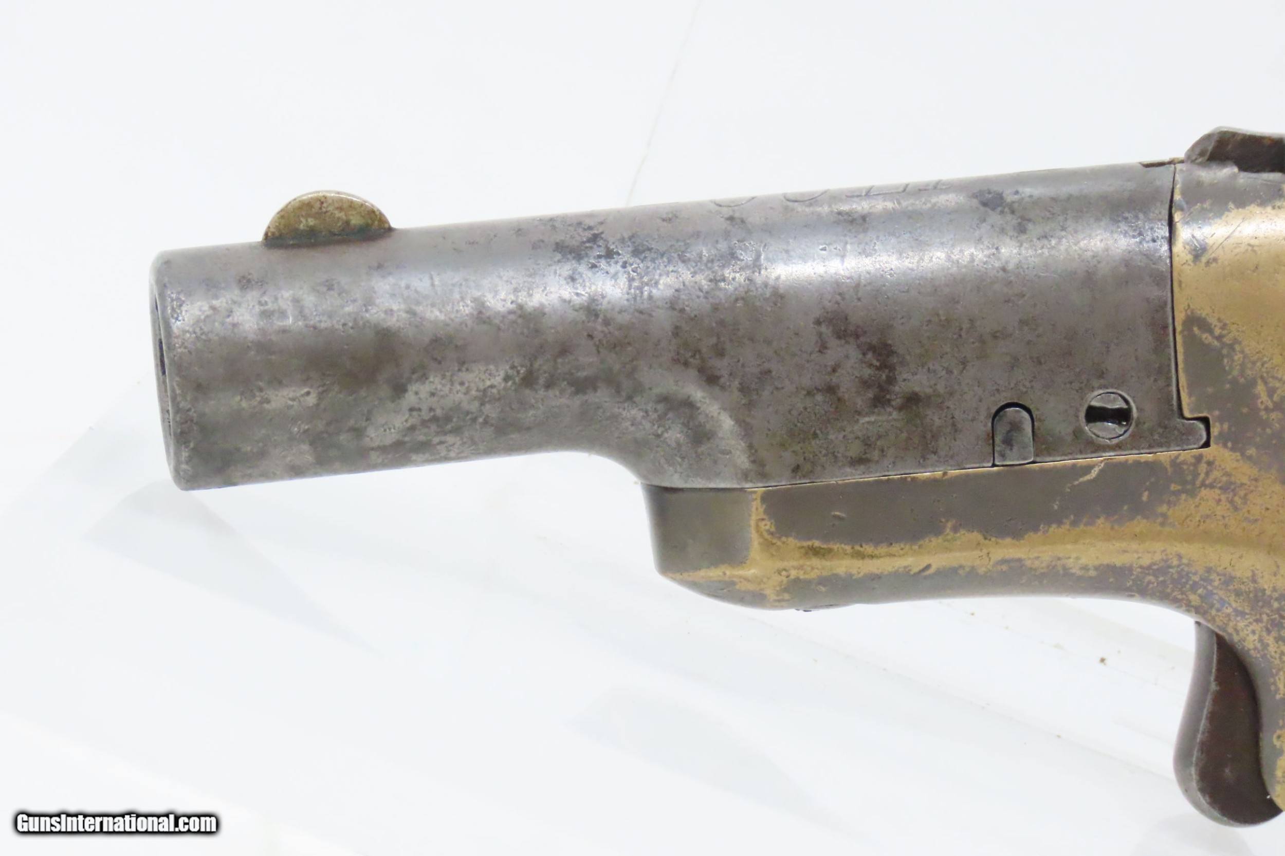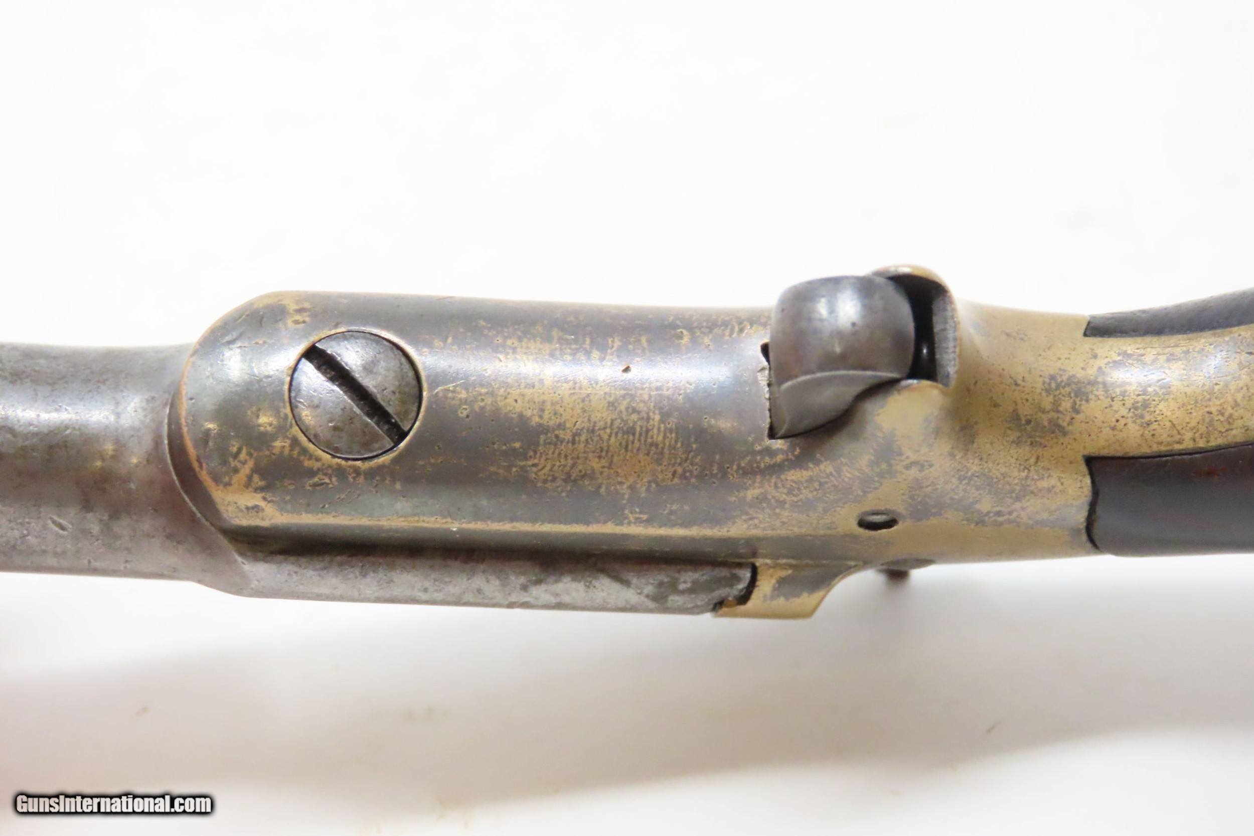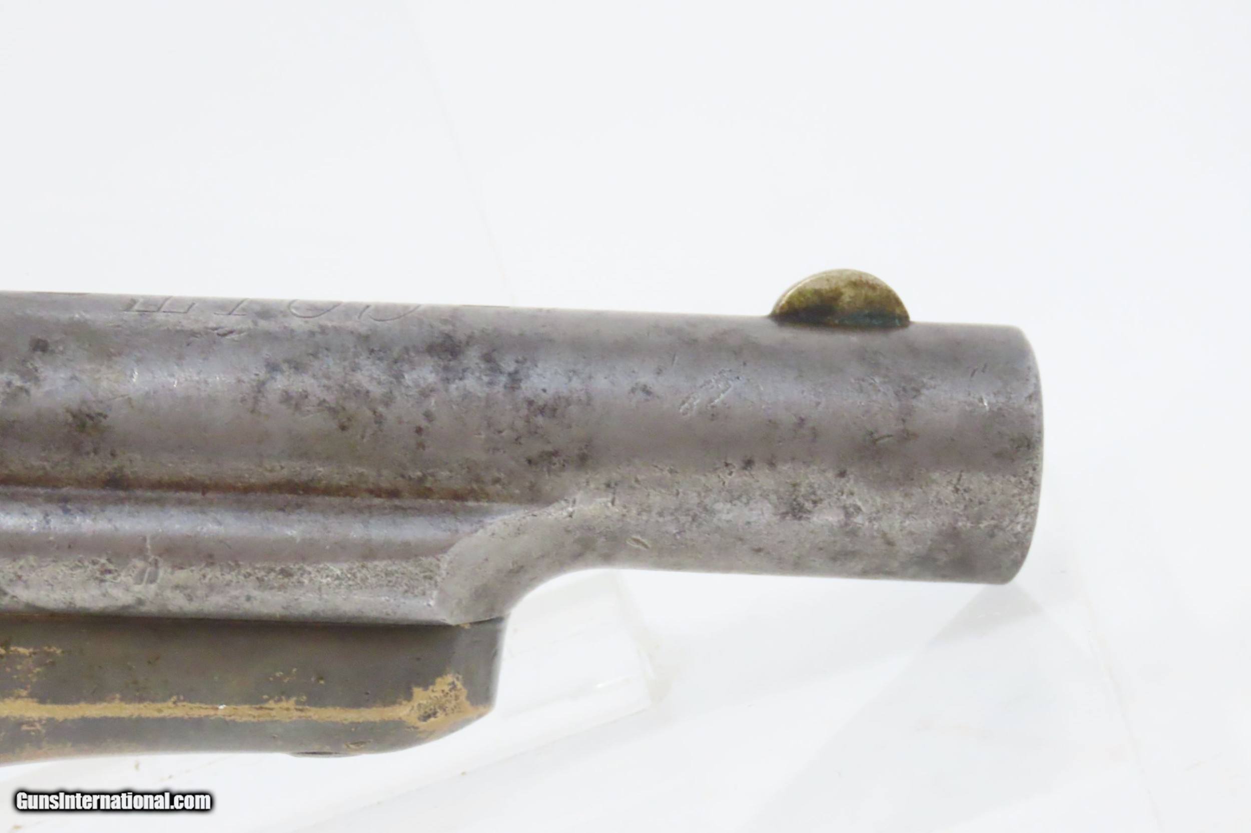 Description: COLT Third Model “THUER” Single Shot .41 Caliber RF NEW MODEL Deringer C&R Late 1800s/Early 1900s HIDEOUT Self-Defense Pistol Here we present a C&R Colt Third Model Thuer Deringer, also known as the New Model Deringer, made between 1875 and 1912. During this span, Colt manufactured 45,000 of these deringers. The serial number series ran from 1 to 45,000, though the yearly production numbers are not known. In 1870 Colt’s purchased National Arms Company and began producing a Deringer pistol based on its design. This became Colt’s First Model Deringer, and it was Colt’s first single shot pistol. It was followed in quick succession by a very similar pistol, called Colt’s Second Model Deringer. Both of these pistols were chambered for .41 rimfire and featured a barrel that rotated counter-clockwise for loading and unloading. In the same year, a Colt employee, F. Alexander Thuer, patented an altogether different design. His Deringer had a barrel that pivoted to the right on a vertical axis for loading and unloading. Instead of using a manually operated latch to open, his used a very positive, spring-loaded catch and detent that did not require anything but a firm twist of the barrel. This spring-loaded catch also acted as an automatic ejector, which was very handy for a single shot self-defense pistol. These were sold alongside the other two models as the Third Model Deringer but are now known to many as the Thuer Model. The Thuer was far and away the most successful of the three. These were very refined, very handy conceal and carry pieces all the way through 1912, when semi-automatic firearms took the lion’s share of the market. The overall condition is good. Strong action. Good bore. Both grips contain an above average amount of handling. Legible markings. Here is a nice and little, no frills, get the job done, Deringer from Colt. This firearm is classified as a Curio & Relic. Barrel is 2-1/2 inches. Caliber: .41 Rimfire Overall condition as seen in photos. Very Fast. Very Safe. FREE SHIPPING. Will need to be sent to your local FFL or C&R licensee. This firearm is classified as a Curio & Relic. Guaranteed AUTHENTIC & Includes CERTIFICATE OF AUTHENTICITY. ancestryguns $1500 #220628 SOLD Curio/Relic: Yes |