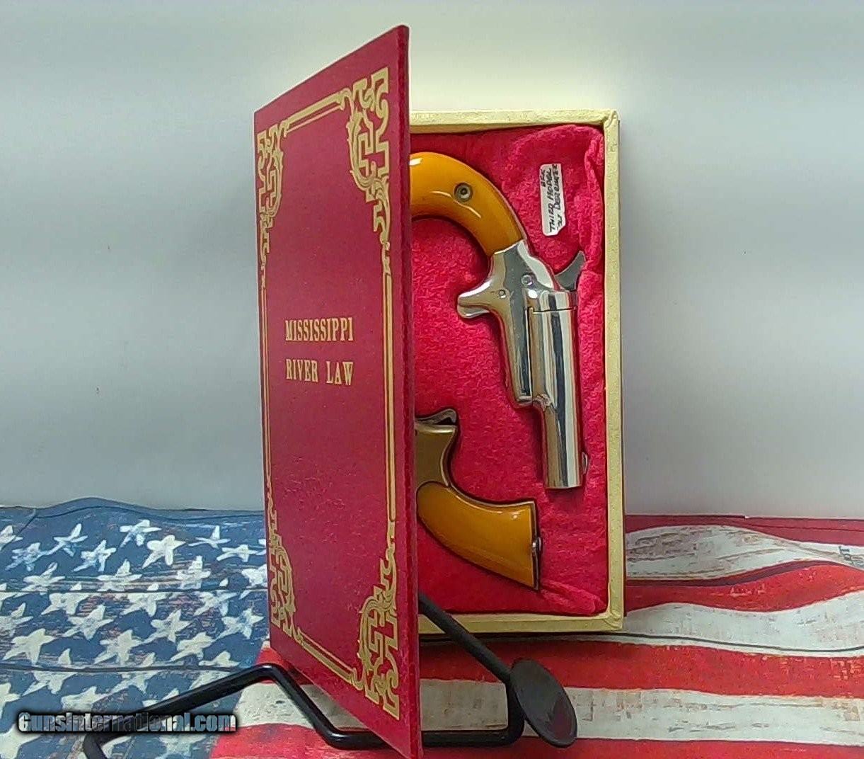 Description: Guns Listing ID: 602496 Two-gun set - must be purchased together. Serial # 13221 - Colt single shot derringer with a swivel barrel, chambered in .41 Rim Fire. I believe it was manufactured in 1895. Overall, very good condition, however one grip is chipped on the bottom. Serial # 16262 - Sharps model C1 Pepperbox chambered in .22 cal. It was manufactured between 1859 and 1868. Overall, it‚s in very good condition with light patina on the barrel. Both firearms have custom grips made by Maurice Scharlack of the Catalin Company in Corpus Christi Texas. Includes Mississippi River Law book cover. Spine of book cover is frail. Antique: Yes Manufacturer: COLT Model: with Sharps C1 Pepperbox 22 cal Caliber Info: .41 SHORT (.41 RF) Condition: Used - Non-Certified Barrels: 2.5" BARREL Action: OVER/UNDER Finish: nickel Price: $2,499.99 Contact Seller |