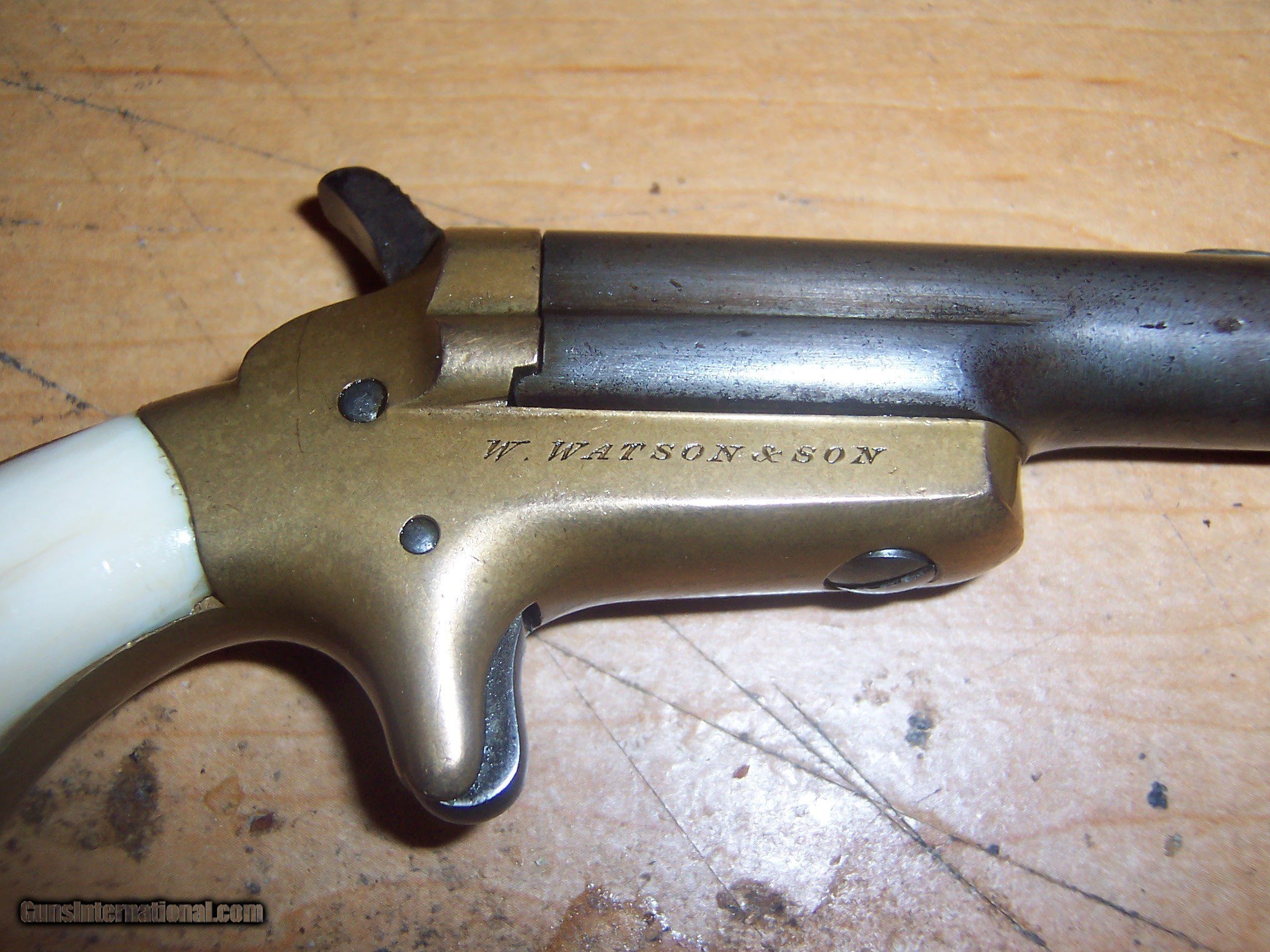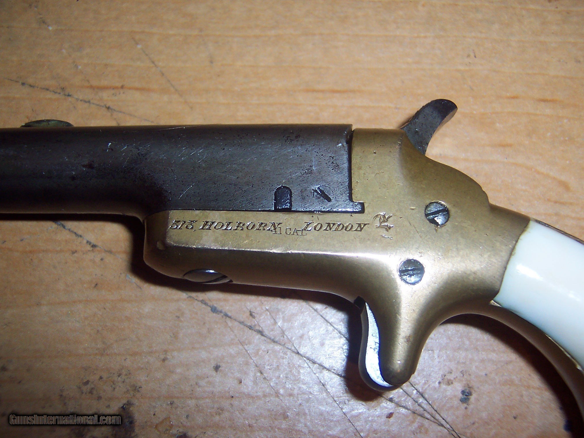 Description: MARKED WITH LONDON DEALERS NAME , NO PROOF MARKS WEAK RIFLING IN BARREL ORIGINA IVORY GRIPS WITH AGE CRACK , WORKS FINE IN DRY FIRE , PATINA FINISH SOLD Antique: Yes |