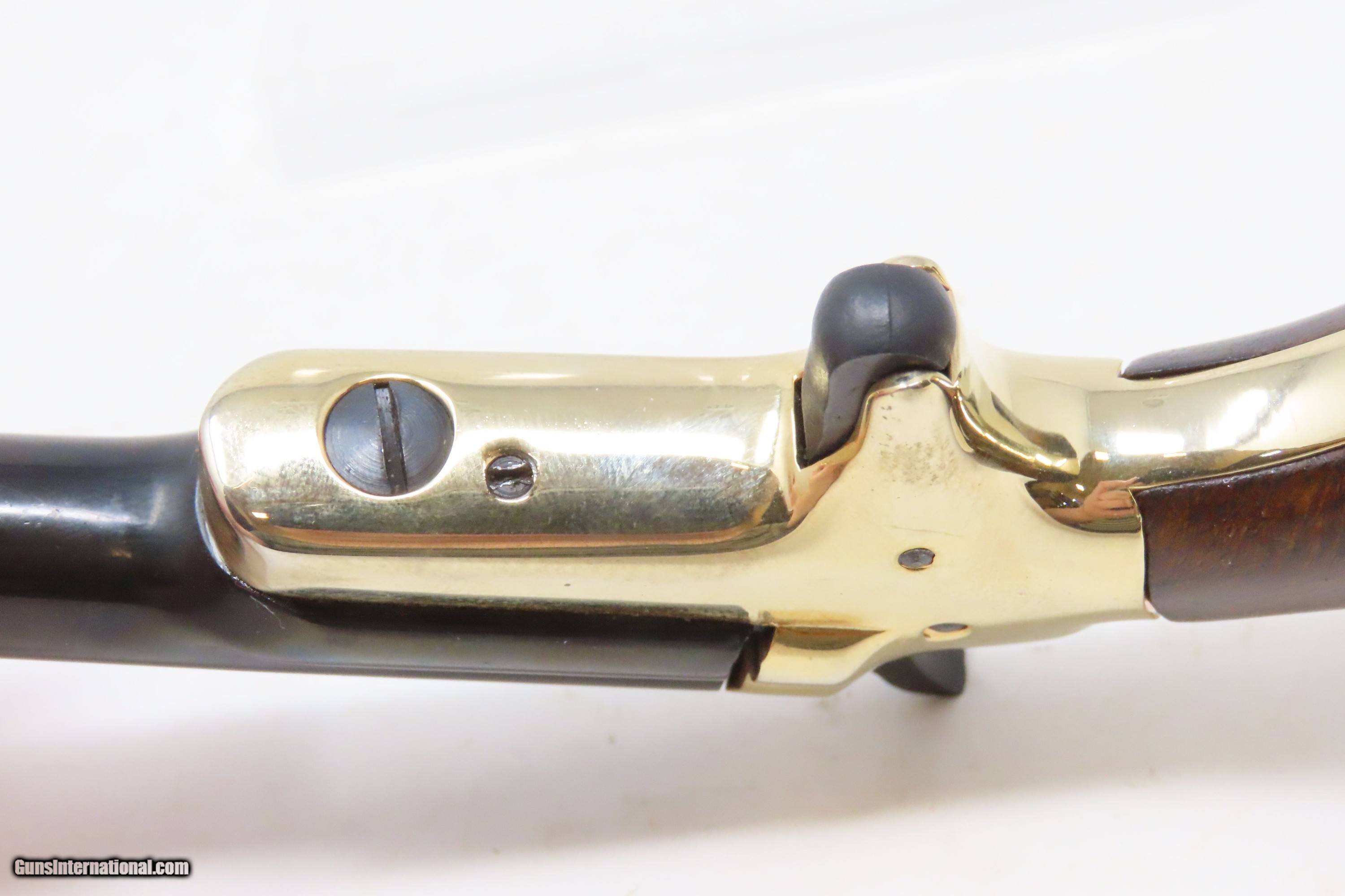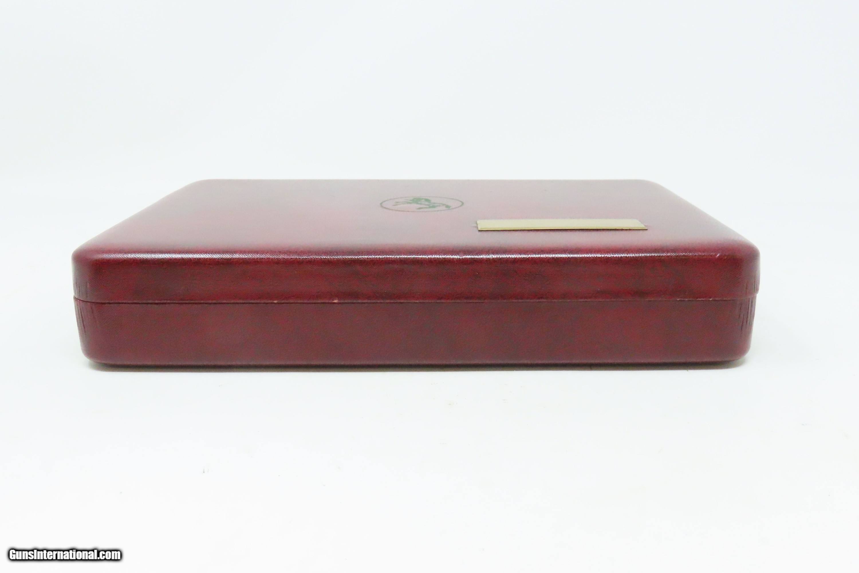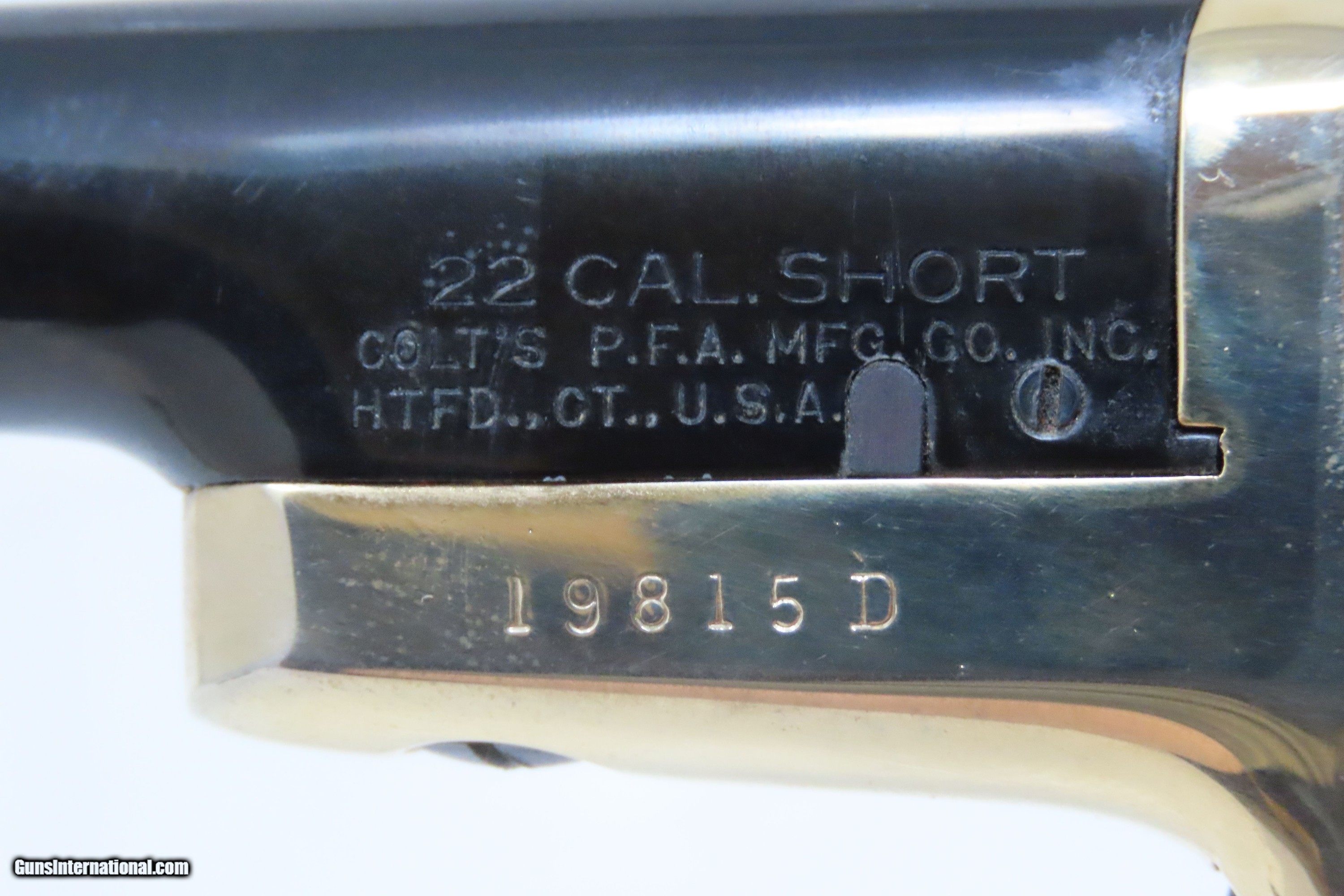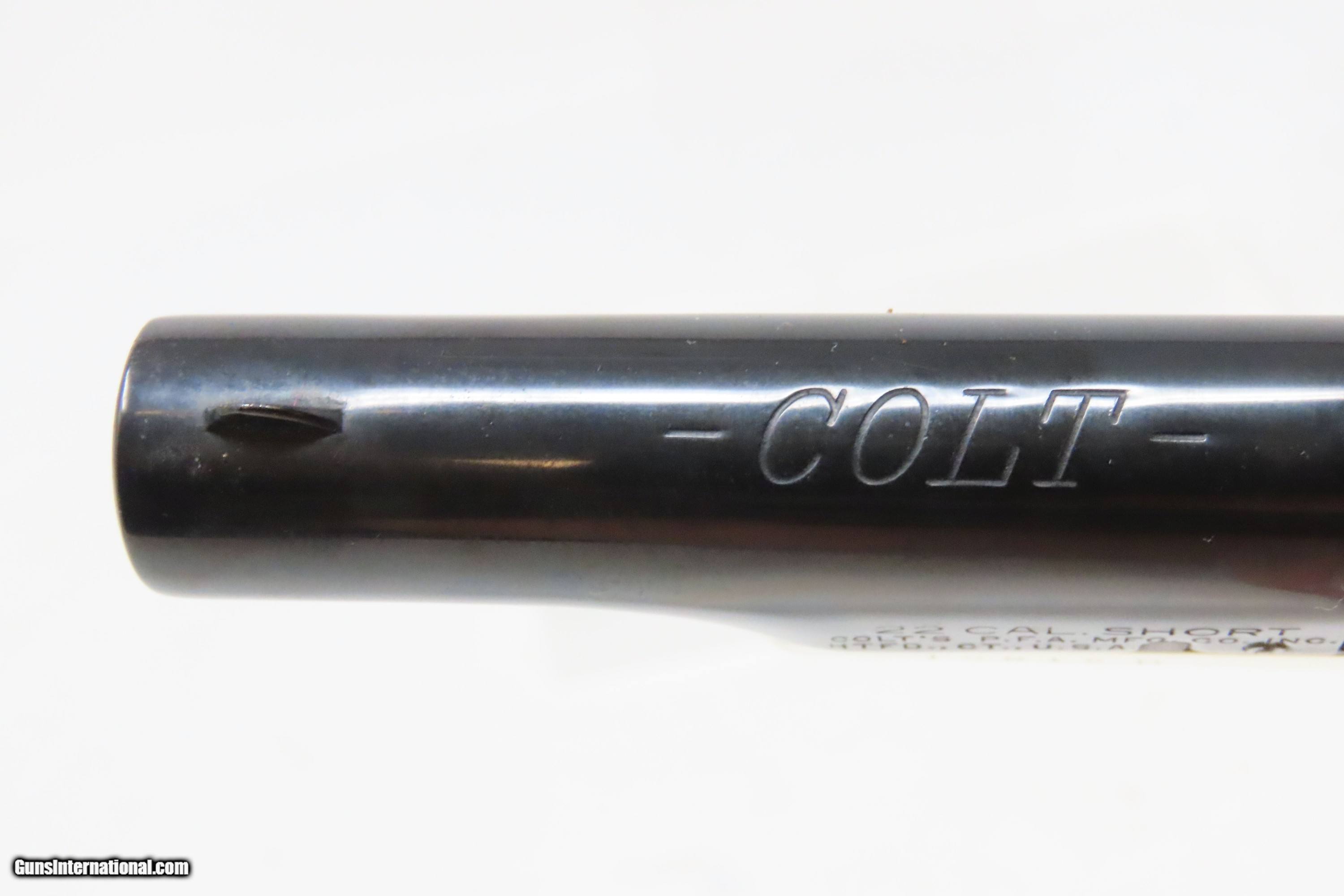 Description: FACTORY CASED Matched Set of COLT Fourth Model .22 Short Modern DERINGERS CONSECUTIVELY NUMBERED “19814D & 19815D” Here we present a Modern Cased Matched Set of Colt Fourth Model Deringers made in the early to mid-1970s in Hartford, Connecticut. These Colt Fourth Model Deringers are designed to mimic the Thuer-designed models. Though, Colt actually didn’t make these pistols. Their name may grace the top of the barrels, and they were made in New Haven, Connecticut, but they weren’t true Colts. A company called Butler produced these pistols for Colt. Butler would later go on to produce these revolvers under their own name after Colt stopped offering them. Sometimes they were sold as pairs, as is this set, and even in fours with sequential serial numbers in velvet lined wooden boxes. These made great displays that were also functional and capable. The first series was made from 1959 to 1963, and over 110,000 guns were produced. A second series, as are these pistols, ran from 1970 to 1973, with 25,000 more produced. These examples were made in the second series according to the D suffix at the end of the serial number. Loading requires the gun to be half-cocked, then the barrel pivots sideways to open the chamber. Load your single little .22 Short cartridge and pivot the barrel back in place. To fire the weapon, you fully cock the hammer and pull the small spur of a trigger. The overall condition of both examples is excellent. Robust action. Bright bores. Fine grips. Sharp markings. The included case is very good. This firearm is classified as Modern. Barrels are 2-1/2 inches. Caliber: .22 Short Rimfire Overall condition as seen in photos. Very Fast. Very Safe. FREE SHIPPING. Will need to be sent to your local FFL. This firearm is classified as Modern. Guaranteed AUTHENTIC & Includes CERTIFICATE OF AUTHENTICITY. ancestryguns $1200 #230429 SOLD Curio/Relic: Yes |