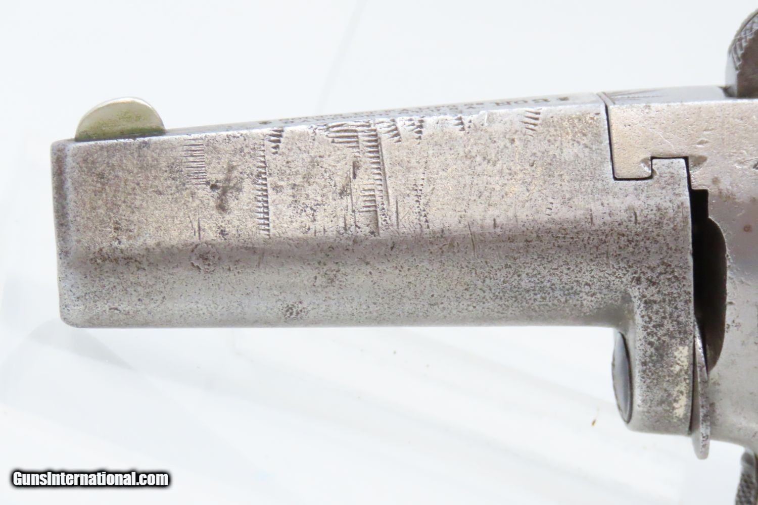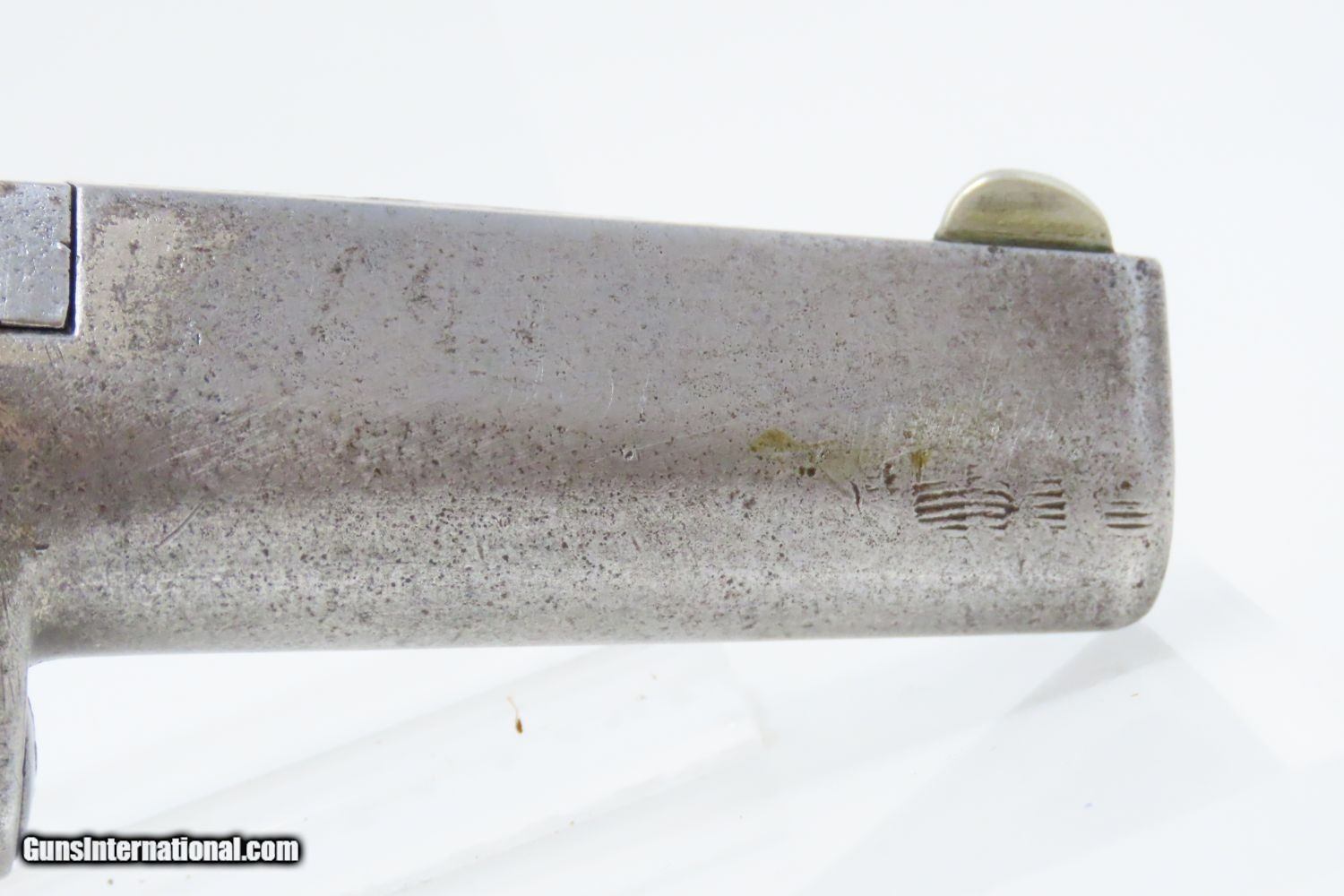 Description: FACTORY ENGRAVED Antique COLT 2nd Model .41 Caliber SINGLE SHOT Deringer Scroll Engraving from the Factory! Here we present an antique Colt Second Model Deringer pistol made circa 1880 in Hartford, Connecticut. In 1870 Colt purchased National Arms Company and began producing a Deringer pistol based on its design. This became Colt’s First Model Deringer and it was Colt’s first single shot pistol. It was followed in quick succession by a very similar pistol, called Colt’s Second Model Deringer. Both of these pistols were chambered for .41 rimfire and featured a barrel that rotated counter-clockwise for loading and unloading. This little pistol was made from 1870-1890, with a total production of only 9000. This is one of the few Colt pistols to come standard from the factory with scroll engraving. Chambered in .41 rimfire, this little single-shot packed a sizeable projectile. The Colt address is on top of the barrel. The overall condition is very good. Strong action. The bore is in good shape with nice rifling. Original checkered rosewood grips. The left grip has a split that is stable. Light floral engraving on the frame. Colt’s take on the original concept of Henry Deringer! Own the original! This is a legitimate antique and not a reproduction. Barrel is 2-1/2 inches. Caliber: .41 Rimfire Overall condition as seen in photos. Very Fast. Very Safe. FREE SHIPPING WORLDWIDE. Delivered directly to your door by express mail! Guaranteed AUTHENTIC & Includes CERTIFICATE OF AUTHENTICITY. ancestryguns $1265 #210705 SOLD Antique: Yes |