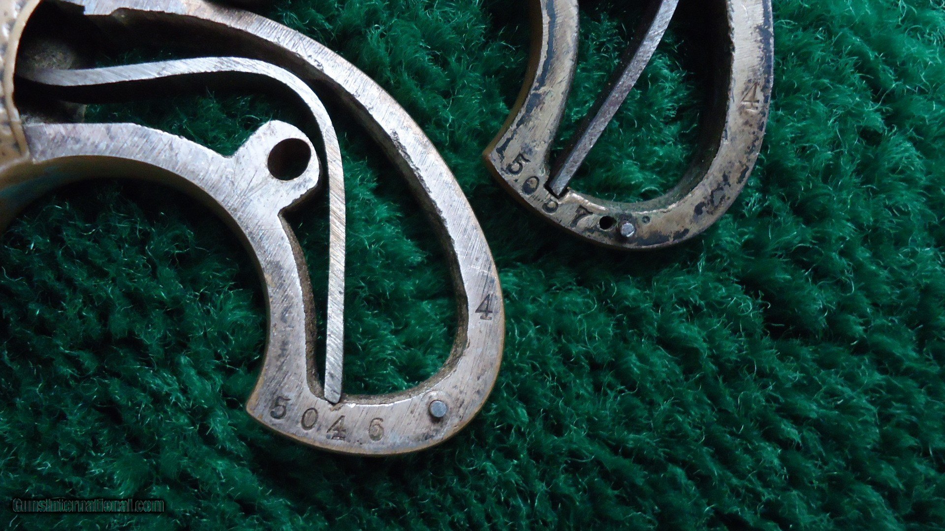 Description: 41 RF caliber. Interesting thing is that these two derringers are only 9 serial numbers apart. Most are around 100 numbers apart. They are fitted in a nicely done Moroccan leather case with a buckskin interior. French fitted. The guns are in very fine condition. One has about 80% barrel blue and the other has about 40% with the balance turning a plum/blue color. The one with the most blue has very little silver on the frame. The one with very little blue has most all the silver on the frame thinning in high spots. Excellent fancy grips. Mechanics are good with bright shiny bores. Very nice pair of factory engraved Colt derringers. They are nicely fitted in case with a period screw driver and seven rounds of ammo. Original throughout. Leroy Merz Antique Firearms specializes in antique and vintage Winchesters and other fine American firearms. Since 1965 Mr. Merz has taken part in the world of firearms and has been a contributor to many well known reference books. We have hundreds of additional guns in every price range at our home online. Search for Merz Antiques in google. SOLD Antique: Yes Handgun Caliber: .41 Rimfire |