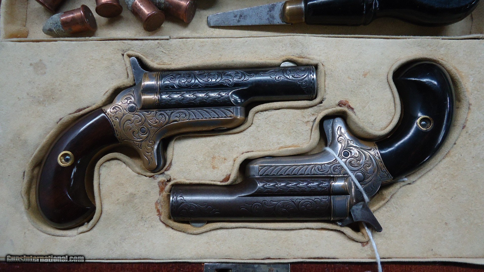 FACTORY ENGRAVED CASED PAIR OF COLT 3RD MODEL DERRINGERS
