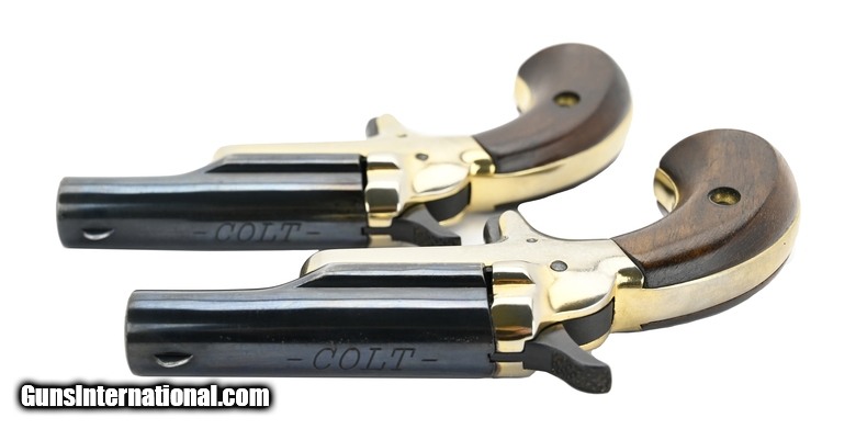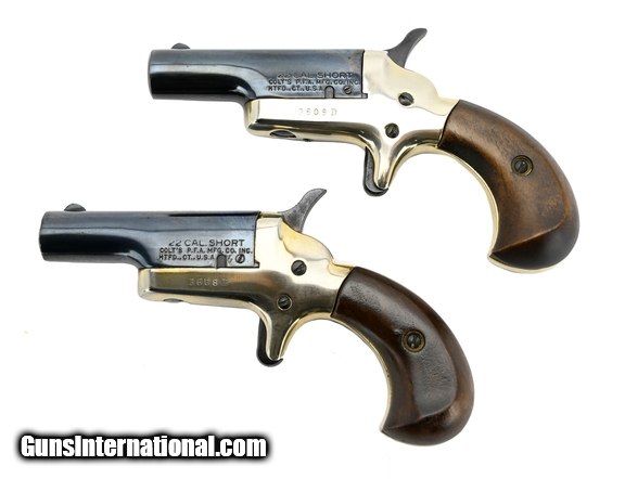 Description: Pair of Colt Derringer .22 Short caliber derringers. Pair of single shot Derringers with book style case.