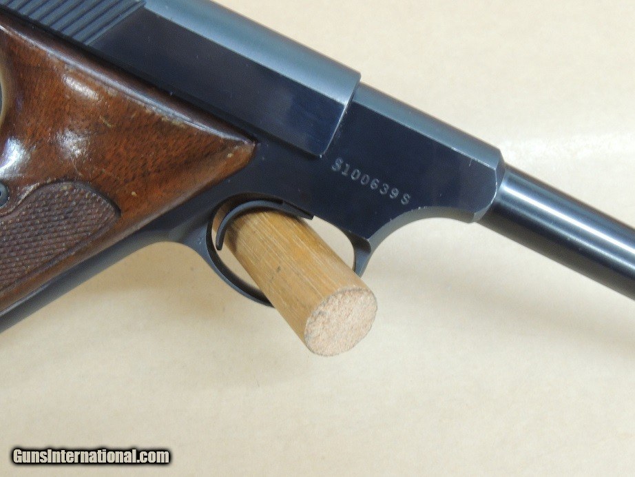 Description: Colt Double S Huntsman .22LR Pistol, 6" Barrel with mint bore, 98% Blue, grips Show a little wear, April 1976 production, scarce variation for the Woodsman collector, In 1976 1336 frames were serial numbered with duplicate serial numbers from 1952, in order to salvage these 1336 frames they were hand stamped with S prefix so the duplicates have S prefix and S suffix thus the Double S Huntsman variation $750 Helpful Information: *Please make sure to include our inventory number and or Item description in text messages * If this item has the Box, Papers or various extra items they will be pictured and described, This item listing is in stock and available for purchase unless the Sale Pending Tag is present.* No sales to California *Payment Options *Postal Money Order* Cashiers Checks *Personal Checks (Item held until Check Cleared* Layaway 120 days*No Interest*Pay any way, any time you like over the term *Deposit required *Credit Cards Visa or Master Card 3.5% fee added to total sale* GA residents 7% sales Tax Applies *Best Phone Number for Calls or Text 229-424-8450* Shipping & Insurance $45.00, 6" Barrel with mint bore, 98% Blue, grips Show a little wear, April 1976 production, scarce varation for the Woodsman collector, In 1976 1336 frames were serial numbered with duplicate serial numbers from 1952, in order to salvage these 1336 frames they were hand stamped with S prefix so the duplicates have S prefix and S suffix thus the Double S Huntsman variation $750 Helpful Information: *Please make sure to include our inventory number and or Item description in text messages * If this item has the Box, Papers or various extra items they will be pictured and described, This item listing is in stock and available for purchase unless the Sale Pending Tag is present.* No sales to California *Payment Options *Postal Money Order* Cashiers Checks *Personal Checks (Item held until Check Cleared* Layaway 120 days*No Interest*Pay any way, any time you like over the term *Deposit required *Credit Cards Visa or Master Card 3.5% fee added to total sale* GA residents 7% sales Tax Applies *Best Phone Number for Calls or Text 229-424-8450* Shipping & Insurance $45.00 SOLD |