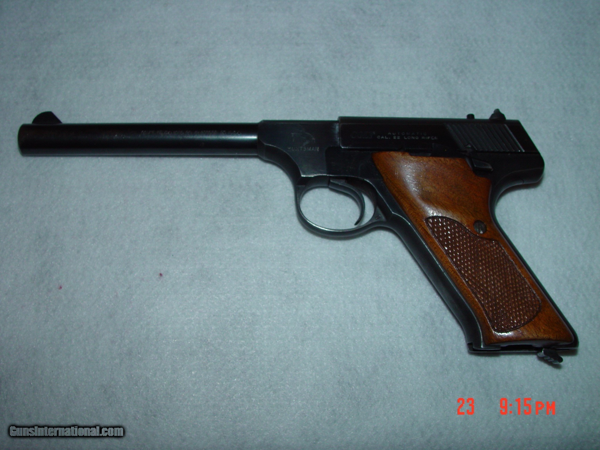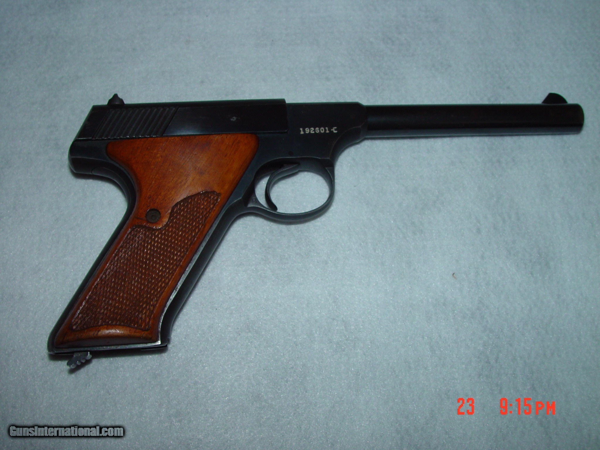 Description: THIS COLT HUNTSMAN MODEL PISTOL IS A .22 RIMFIRE. IT IS BLUED WITH WALNUT GRIPS, HAS A 6" BBL AND ONE MAGAZINE. THERE IS SOME HOLSTER WEAR TO THE BLUING AT THE MUZZLE AND ON HIGH SHARP EDGES. THE GUN FUNCTIONS WELL AND HAS NO OPERATIONAL ISSUES. SOLD Curio/Relic: Yes |