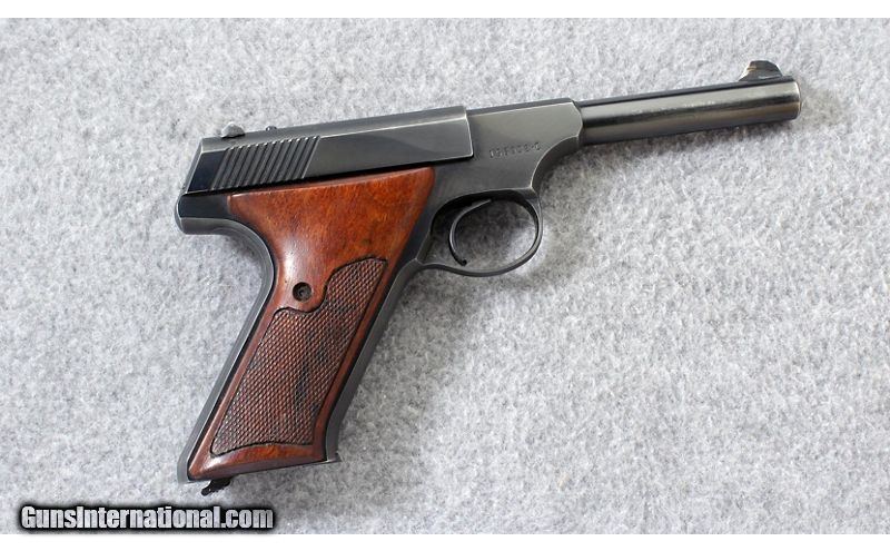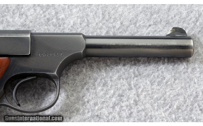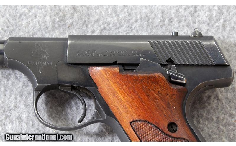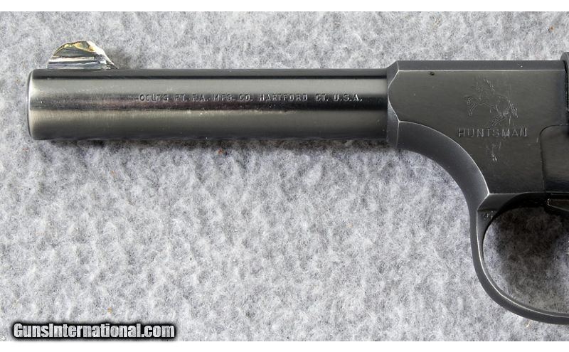 Description: The Colt Huntsman .22 LR semi-auto pistol was in production from 1955 to 1977. It was introduced as a lower cost version of the famous Woodsman pistol. It is affine pistol for small game hunting and plinking. Manufactured in 1960. .22 Long Rifle SOLD Metal Condition: "Good, with holster wear on the barrel, sharp edges and frame Wood Condition: Good with finish wear and dents Bore Condition: Very good Barrels: 4 1/2 inch pinned barrel Triggers: Single action Weight: 32 oz. Sights: Drift adjustable rear sight and blade front Item Location: Lehi, UT |