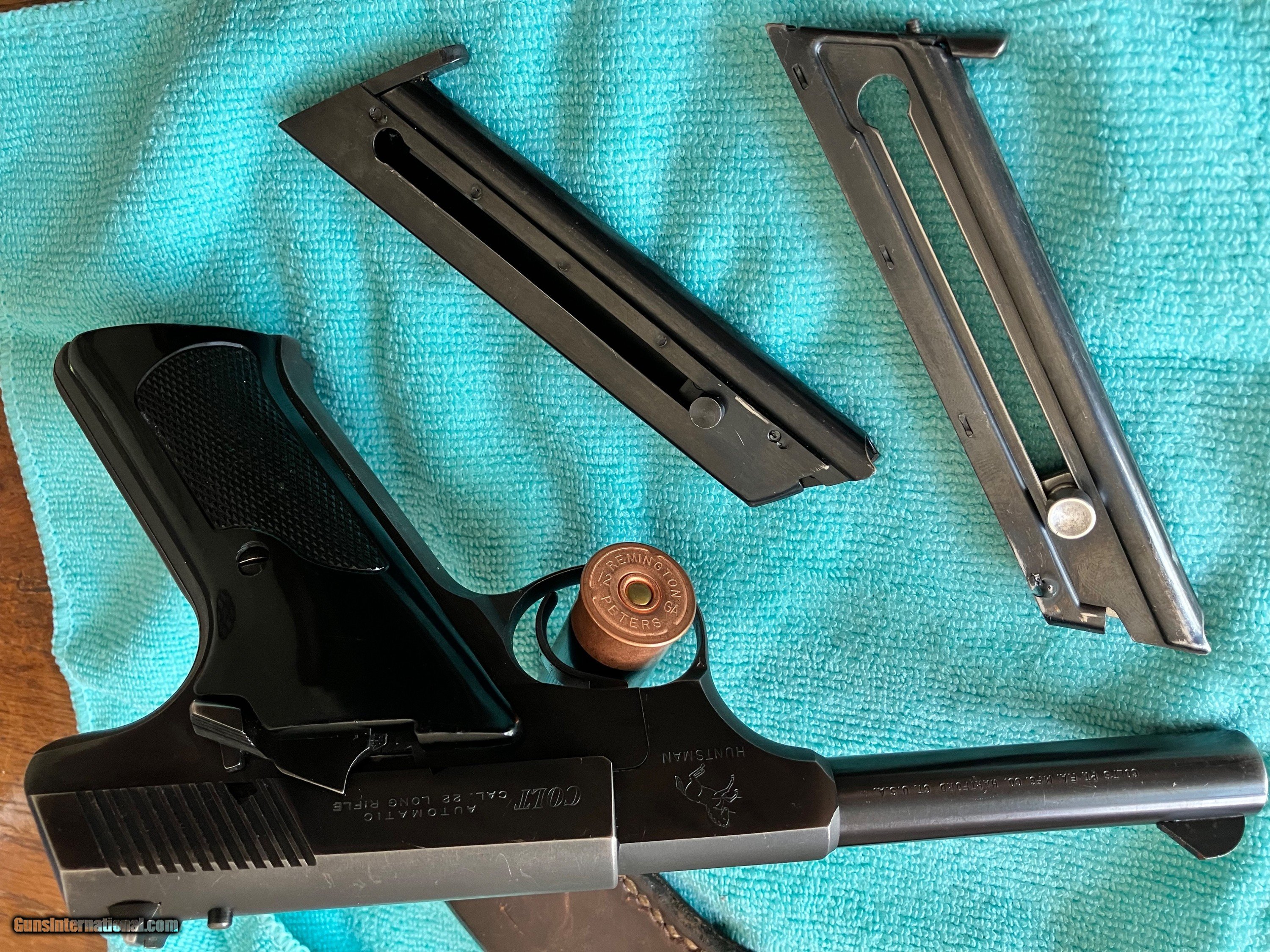 Description: Colt huntsman 22 LR very good condition, think it was made in 1957. Two magazines one Colt one not, flap holster gun fits but flap is a little short and doesn't secure. It's a very nice pistol. $450.00 plus shipping from my ffl to your ffl. SOLD Manufacturer: Colt Model: Huntsman Barrel Length: 4.5 Condition: Very good Metal Condition: Very good Bore Condition: Very good Manufacture Date: 1957 |