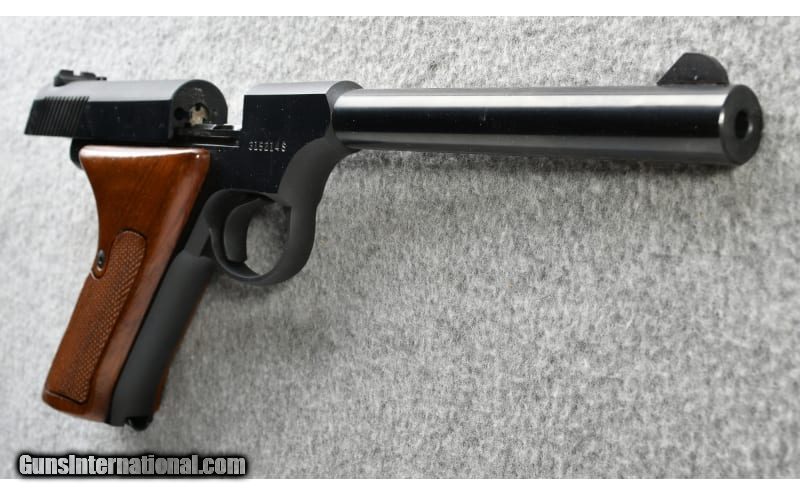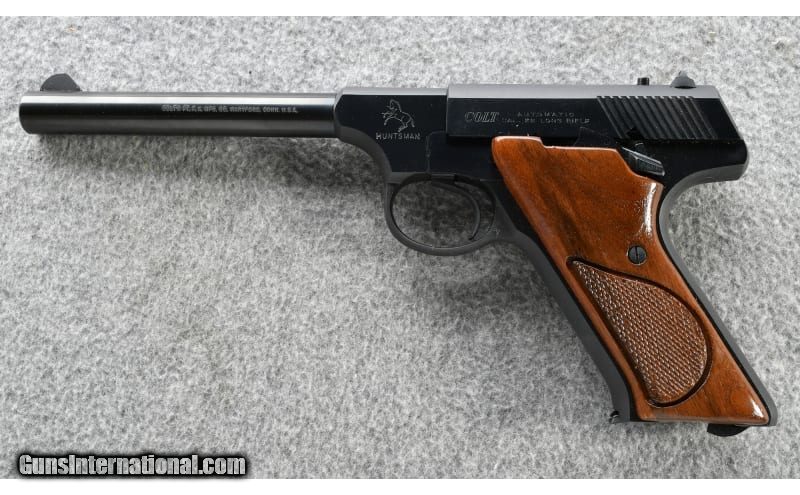 Description: The Colt Huntsman was a less expensive variant of the Woodsman rimfire pistol. This one was made in the last year of production 1977. .22 Long Rifle SOLD Chambers: .22 Long Rifle in a ten round detachable magazine semi-automatic rimfire pistol Metal Condition: "Very good, like new Wood Condition: "Very good, appears new Bore Condition: Bright and crisp Barrels: 6 Triggers: Single action Weight: 32 oz. Sights: "Fixed front, drift adjustable leaf rear Item Location: Grand Junction, CO |