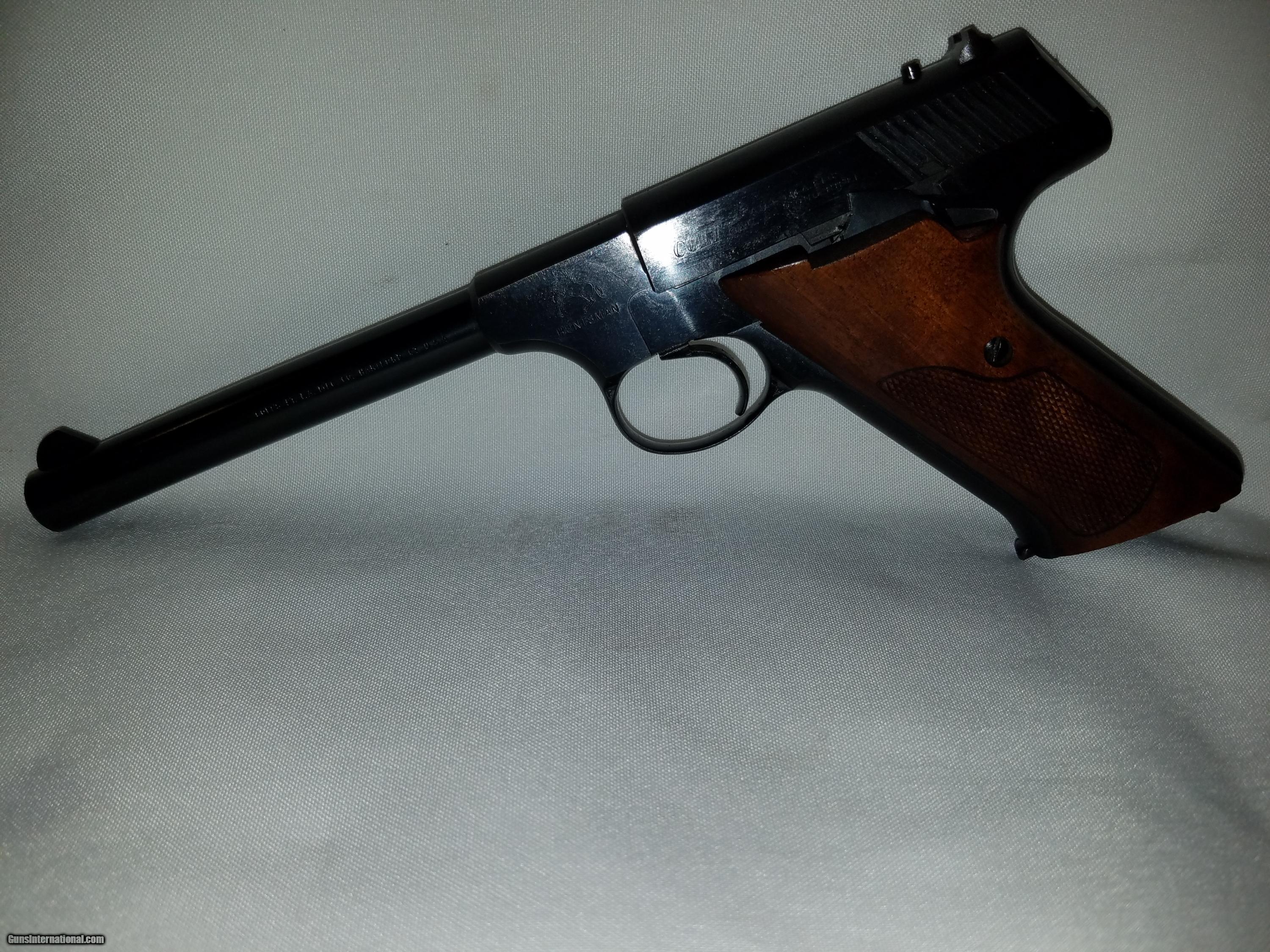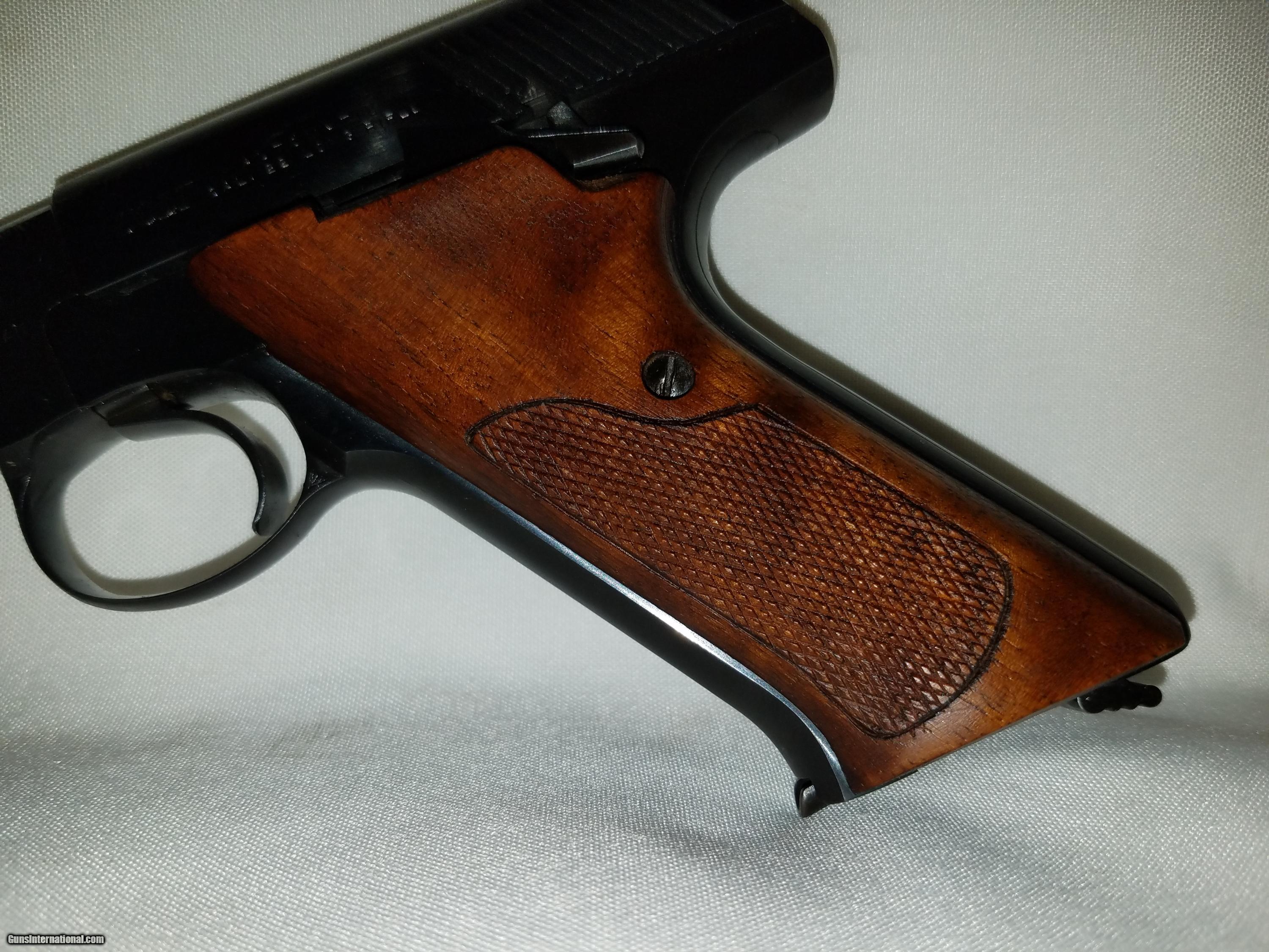 Description: Colt Huntsman 22LR, rimfire, 6" barrel, walnut grip. Mfg 1955-59. SOLD Curio/Relic: Yes Manufacturer: Colt Model: Huntsman Serial Number: 163579C Caliber Info: .22lr Manufacture Date: 1955-59 |