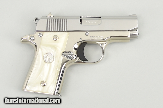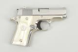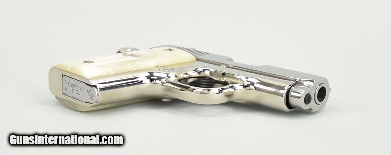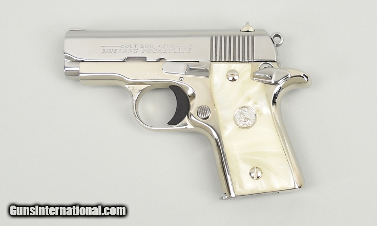 Description: Colt Mustang Pocketlite .380 ACP caliber pistol. Pocket pistol with custom bright nickel finish and fancy grips.