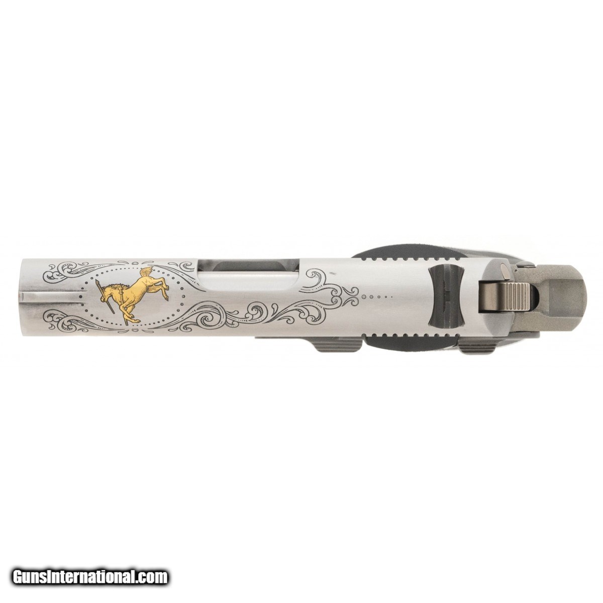 Description: " SN: PL75054. ""Golden Stallion"" special edition stainless/alloy pocket pistol, made in 2013. The slide top is engraved and has a golden stallion inlaid. A beautiful little piece, in excellent condition. SOLD |