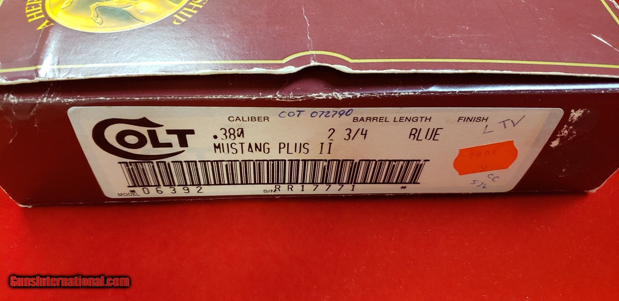 SOLD Manufacturer: Colt Model: Mustang Plus II Serial Number: RR17xxx Caliber Info: .380 Acp |