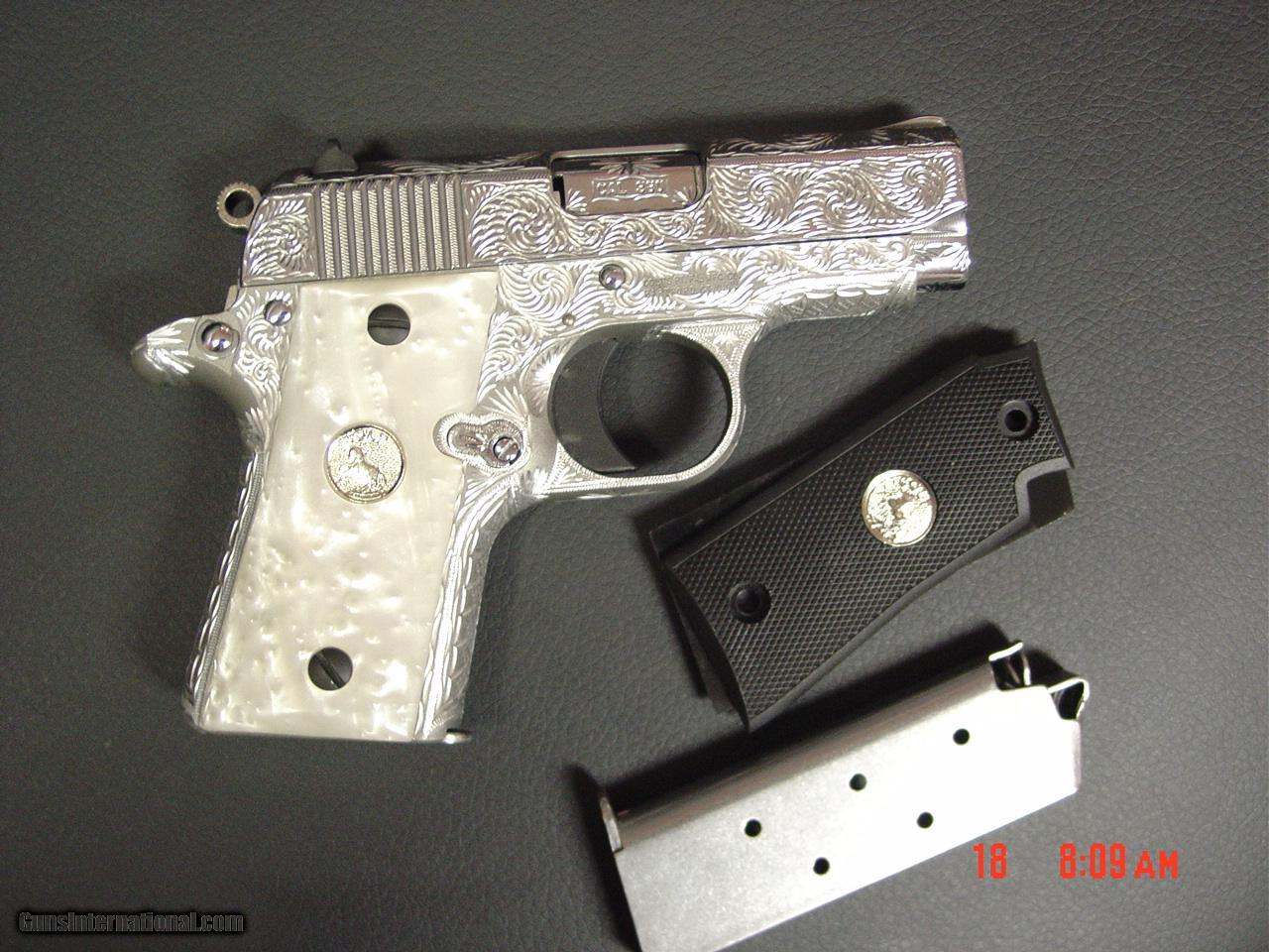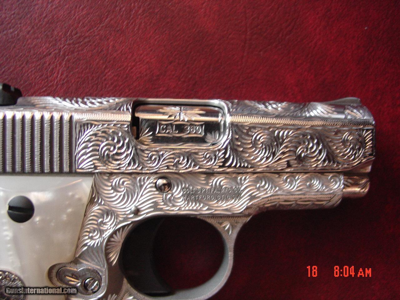 Colt Mustang Pocketlite 380,hand engraved & polished by Flannery Engraving,2 mags,Pearlite grips,box & papers,never fired,awesome work of art !!