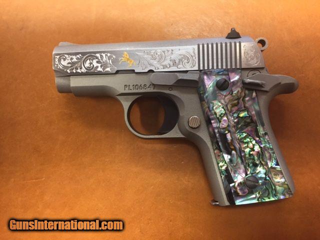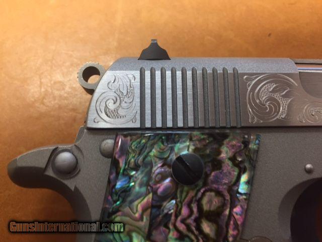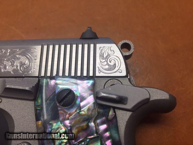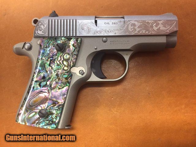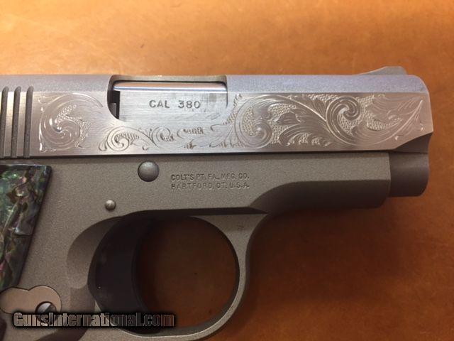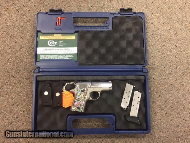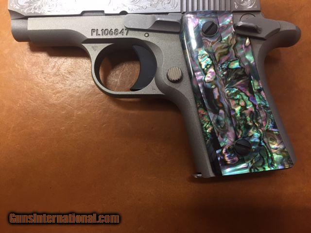 Colt Mustang Pocketlite .380 Nickel/Stainless Finish Engraved with Abalone Grips