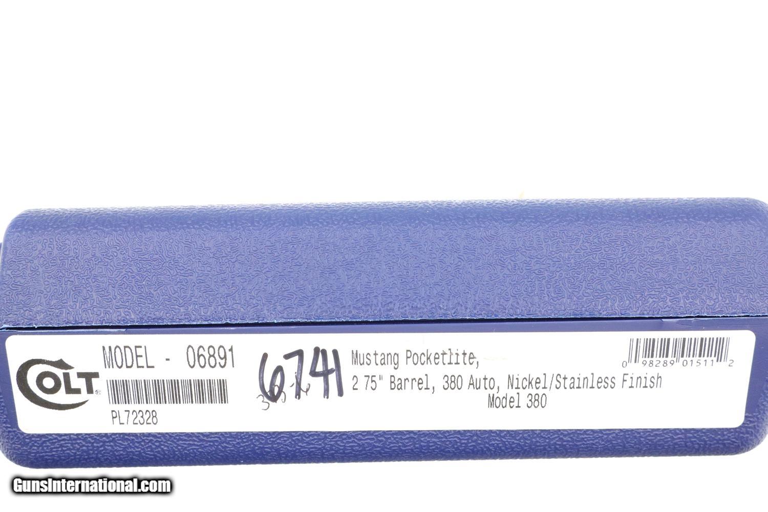 Description: Synopsis: Gorgeous Colt Mustang Pocketlite, .380 Cal, As-new, Original Box with four magazines, Description: Beautiful Colt Mustang Pocketlite pistol chambered in 380ACP. Features a 2.75" barrel with low profile fixed sights. Stainless steel finish with bright slide, matted frame, and black plastic checkered grips with Colt Medallion. Includes four 6-round magazines (two stainless steel, two blued). Complete with original matching shipping box along with all associated literature, hang tag and lock. Condition: Excellent, as-new in original matching box with all paperwork. A little gem manufactured in 2012. ~~Insured shipping fee of $45; most packages shipped using FedEx 2nd Day.~~ SOLD Manufacturer: Colt Serial Number: PL72328 Caliber Info: 0.380 |