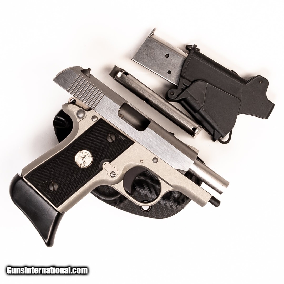 Description: Guns Listing ID: 502921 Small and lightweight, the Colt Mustang Pocketlite is perfect for concealed carry. Loaded, it weighs less than one pound, but despite its compact size, this pistol delivers durability, reliability, and accuracy. It is made with quality materials and precise machining processes. This Mustang Pocketlite includes the original case, manual, three 9-round magazines (one with a pinky extension), speedloader, and an IWB holster. SOLD Manufacturer: COLT Model: MUSTANG POCKETLITE Caliber Info: .380 ACP Condition: Used - Certified Barrels: 26 BARREL Finish: STAINLESS |